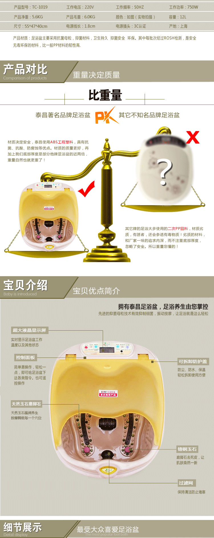 【玉石按摩】金泰昌TC-1019足浴盆翡翠型语音功能大容量养生足浴