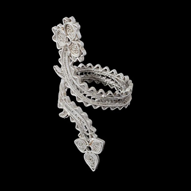 我从来没有见过一种银饰能透出如此的优雅和古典。我从来没有见过一种首饰能把银处理到如此细腻的程度。细致处如丝织。难以想象,这是多么灵巧的一双手。