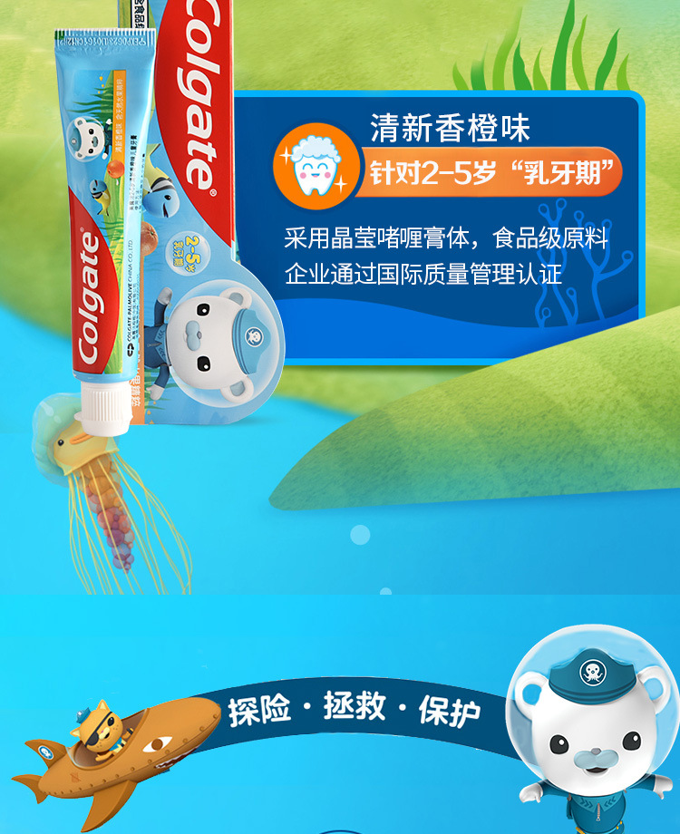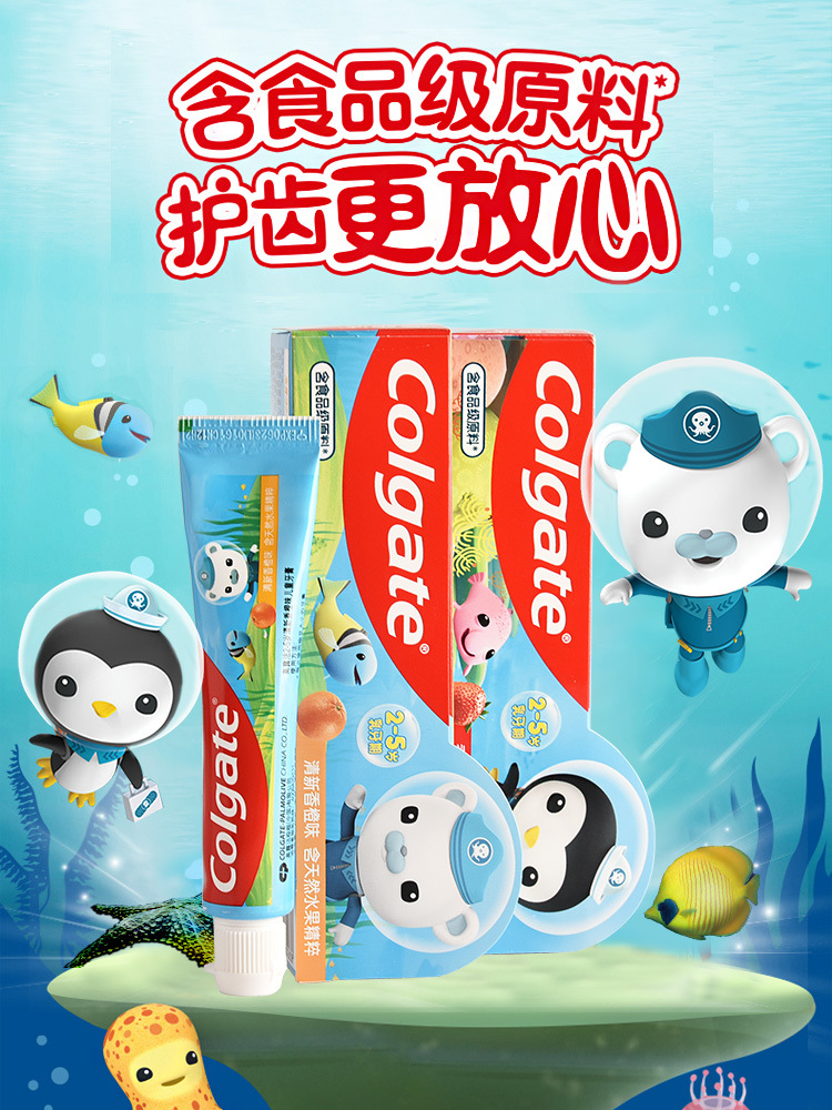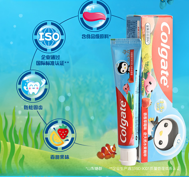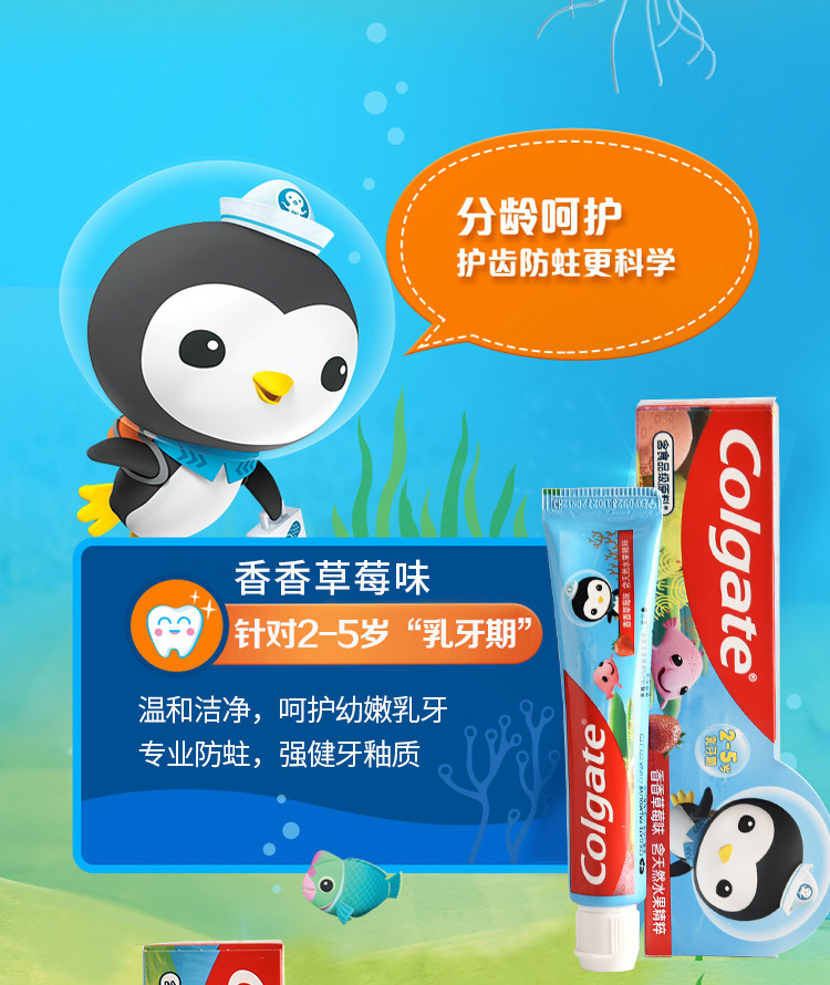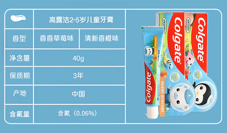 高露洁儿童牙膏2-5岁呵护乳牙清新香橙草莓牙膏40g含氟