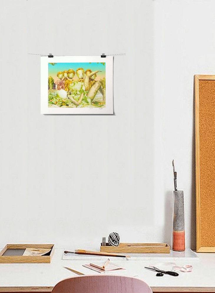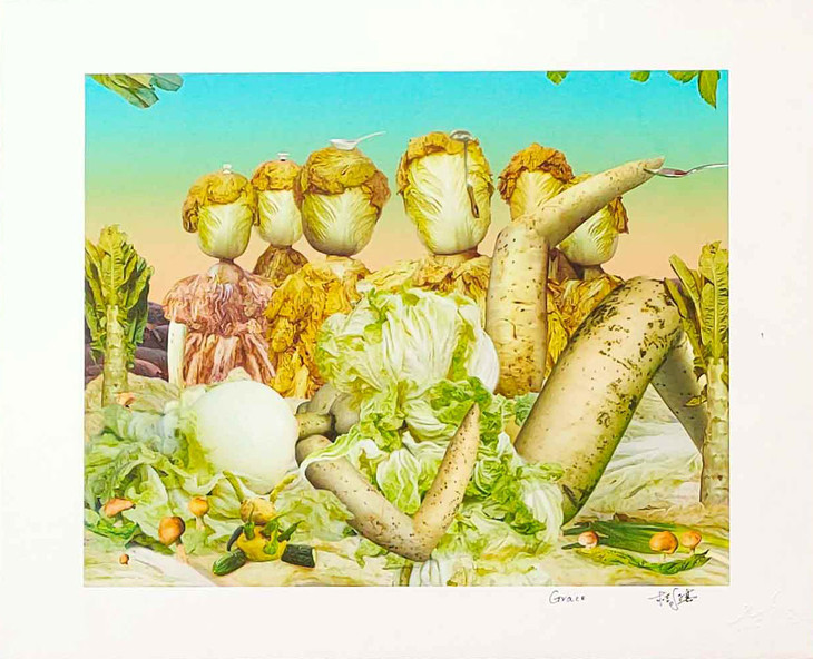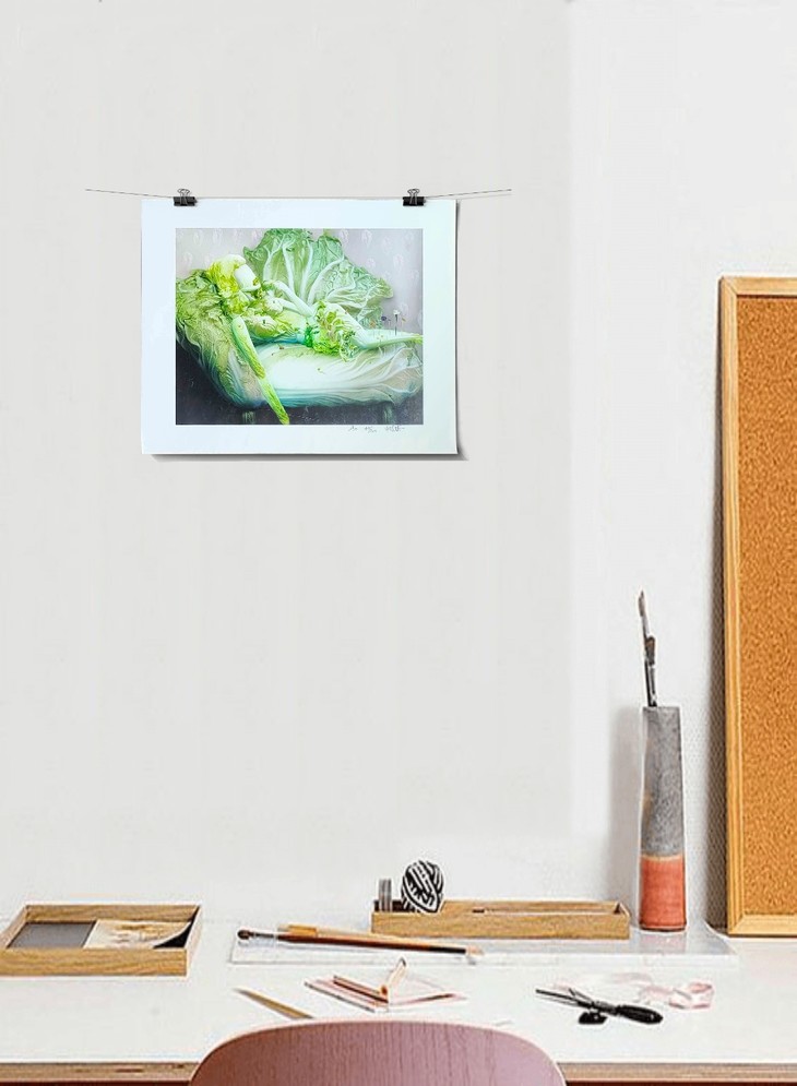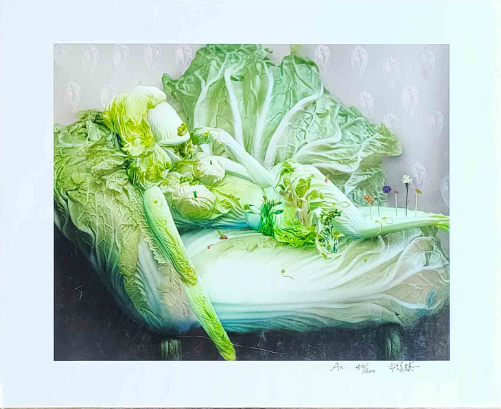 桔多淇继《蔬菜博物馆》之后的另一个影像作品专题。如果说《蔬菜博物馆》是桔多淇幻想的女性的“宏大世界”,那里面尽是对一些伟大的男性人物的戏虐,比如拿破仑、毕加索、梵高、孔子、中国皇帝等等。那么,《白菜的幻想》则是她对平凡世界的赞美,在“白菜的幻想”里没有了那些强势的男人,有的只是由一棵棵普通白菜化身而成的性感妩媚的女人,这是一个真正属于女性的美丽世界。