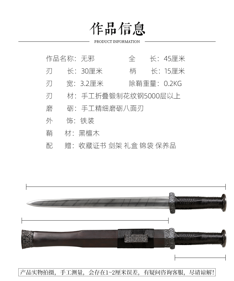 无邪 八面汉剑短汉剑 沈广隆剑铺汉剑龙泉沈广隆宝剑传统剑 sgl-7003 未开刃
