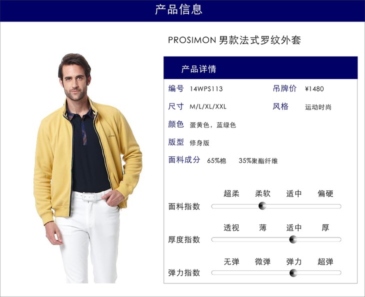 - PROSIMON高尔夫服饰,旗下有高尔夫运动系列、好动衬衫系列、色彩选制系列丰富的商品线。