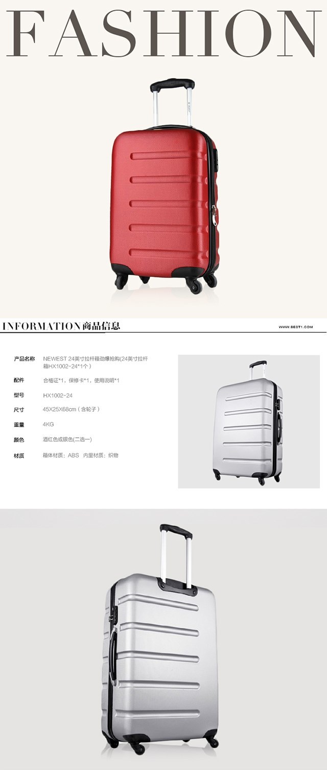 1.主商品说明:NEWEST 24英寸拉杆箱劲爆抢购(24英寸拉杆箱HX1002-24*1个)