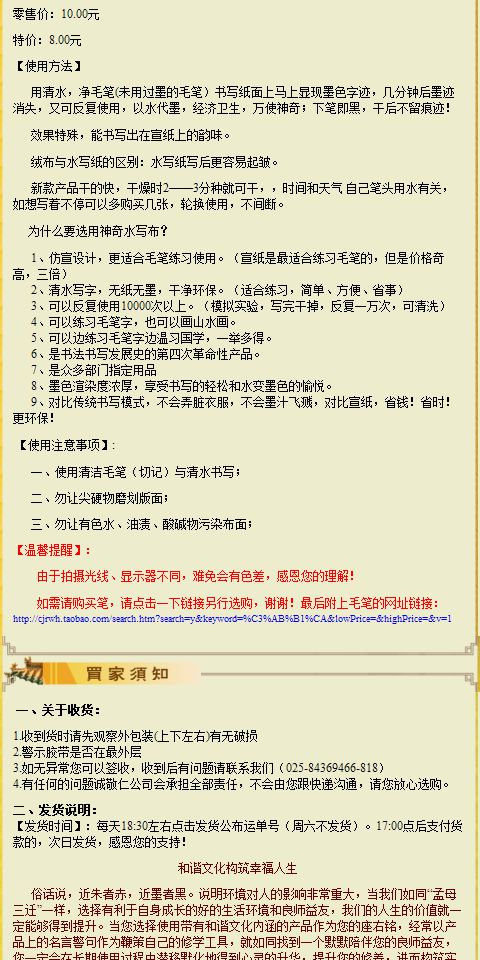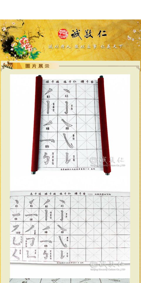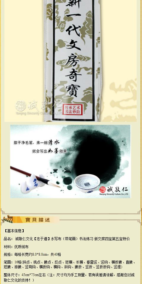 诚敬儒传统文化学习用品【志于道】水写布 不含毛笔 带笔画特价
