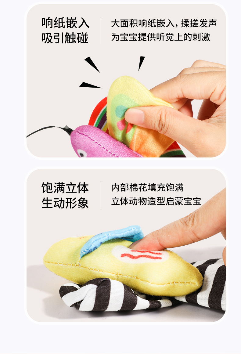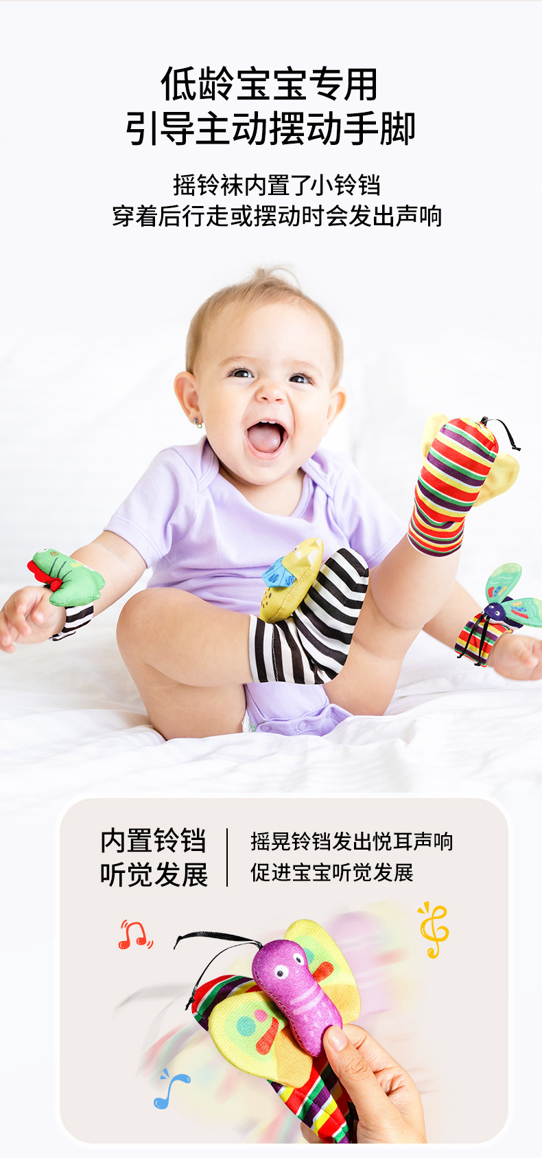 【立体动物摇铃袜4件套 促进感官统合能力】跨境婴儿玩具0-1岁新生儿手腕铃摇铃袜安抚套装小宝宝礼物