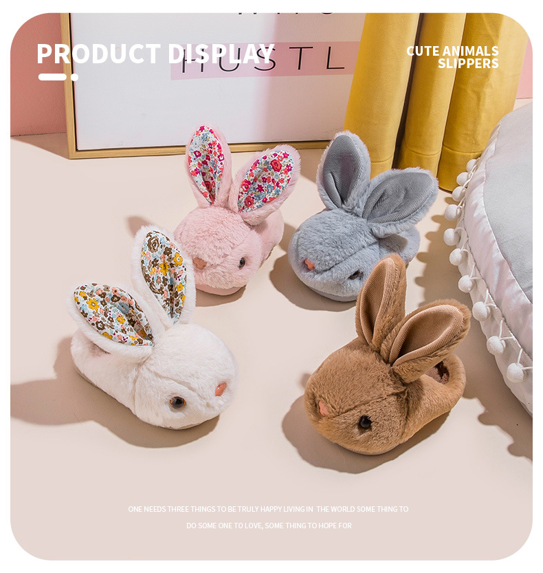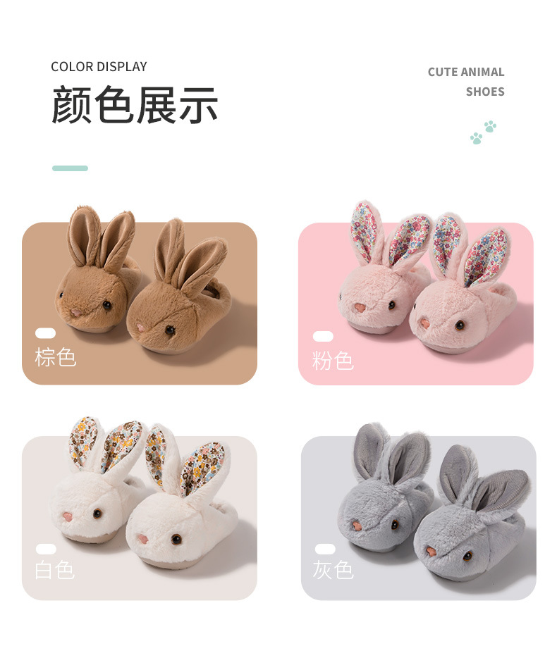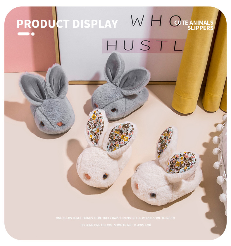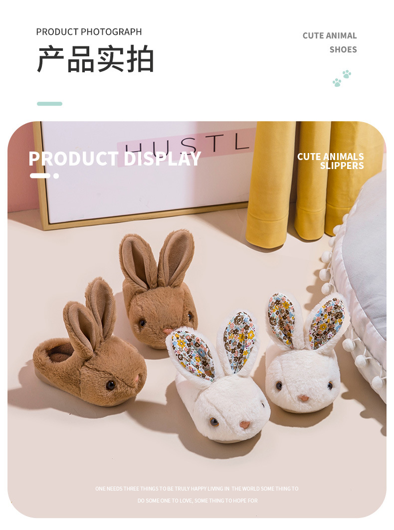【防滑舒适 像踩在云朵上一般享受】小鹿米利2021冬季新款 可爱卡通男童女童超软兔子棉拖鞋