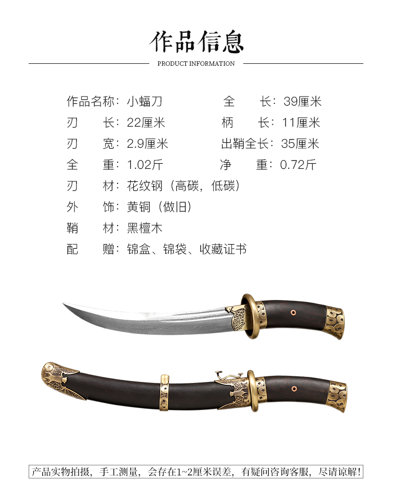 小蝠刀 短刀龙泉短刀剑沈广隆剑铺短剑龙泉沈广隆宝剑精品短刀剑 sgl-7017未开刃