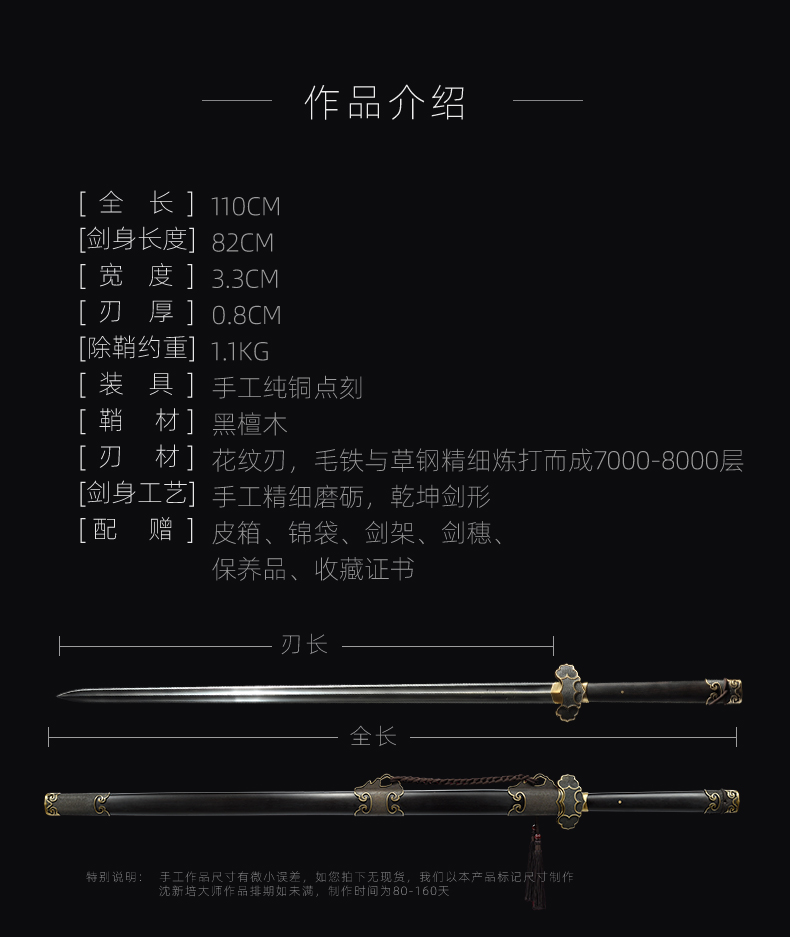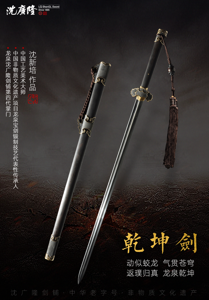 乾坤剑 中国工艺美术大师沈新培作品 沈广隆宝剑龙泉沈广隆宝剑 sgl-1007 未开刃