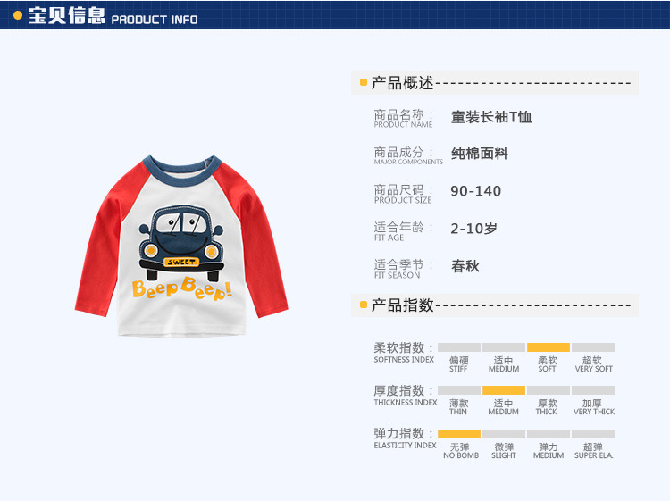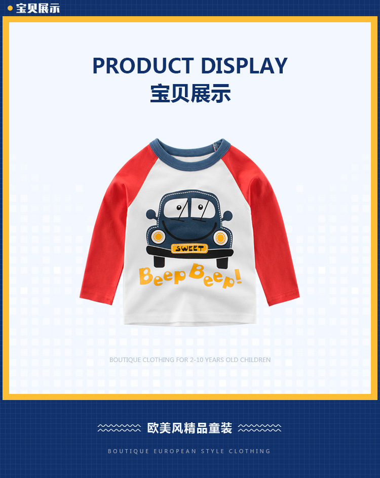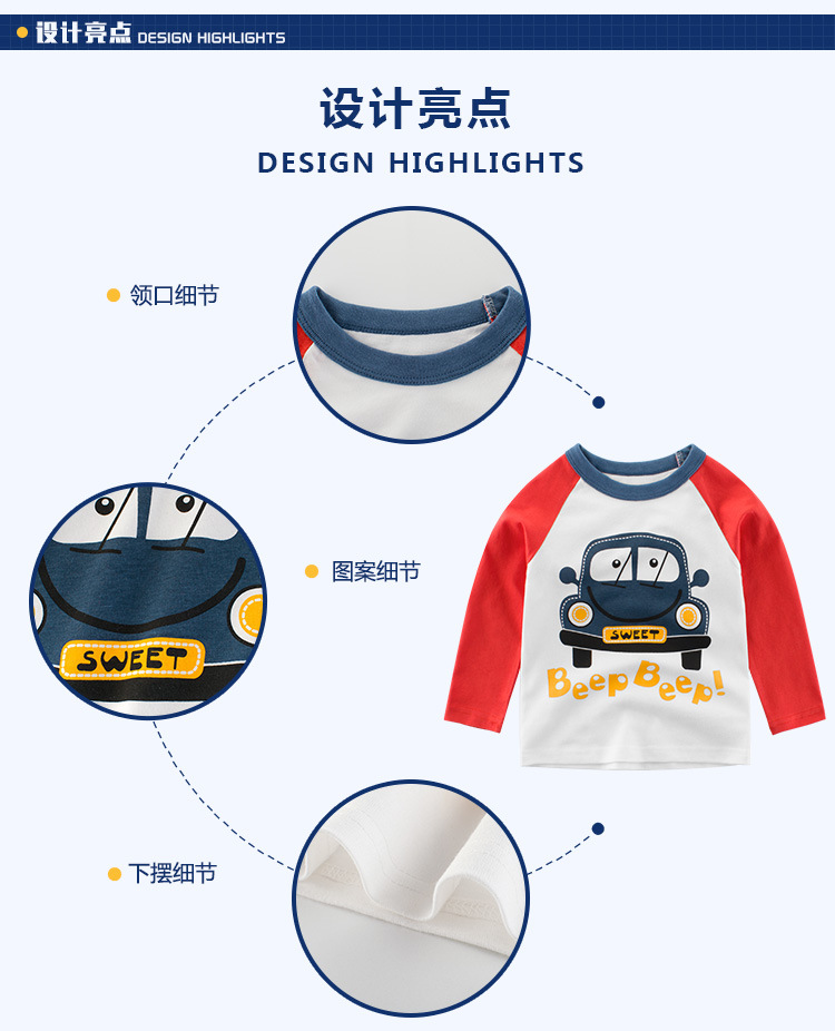【纯棉面料呵护宝宝健康】韩版童装男童春装新品 儿童长袖T恤小汽车宝宝上衣