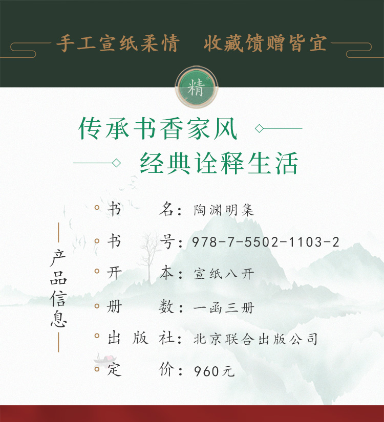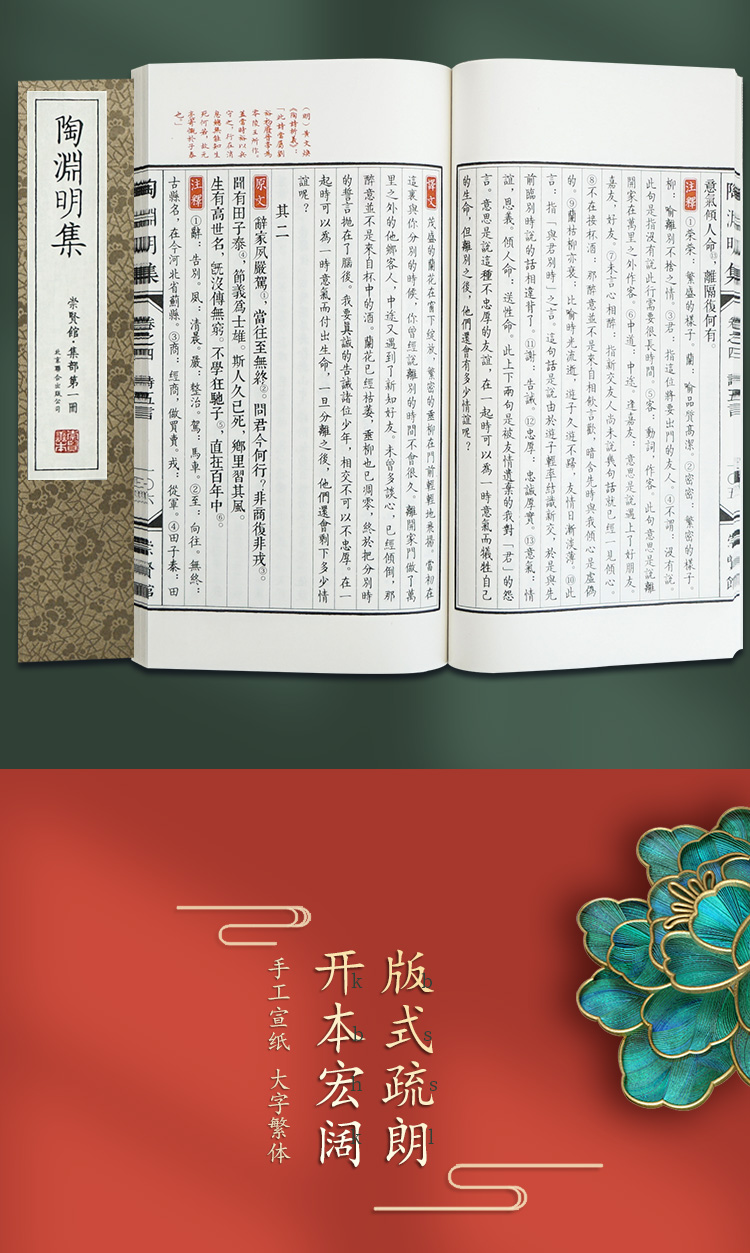 《陶渊明集》(一函三册)手工宣纸线装繁体竖排