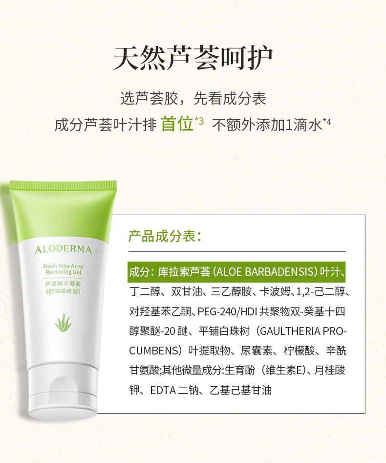 【买就送凝胶5g*2】瑷露德玛芦荟鲜汁凝胶控油袪痘型 80g 控油祛痘 芦荟叶汁位于配料成分表首位