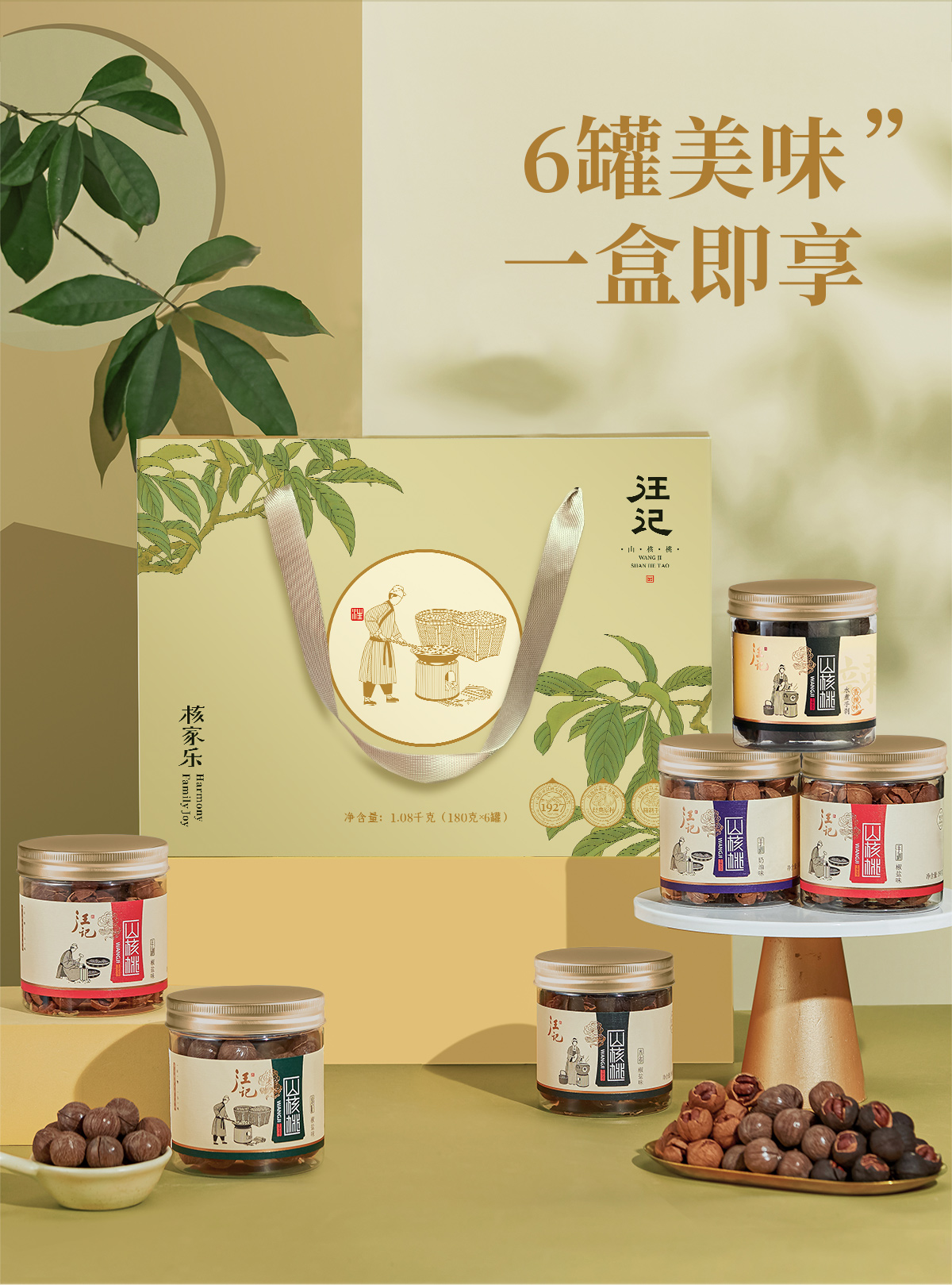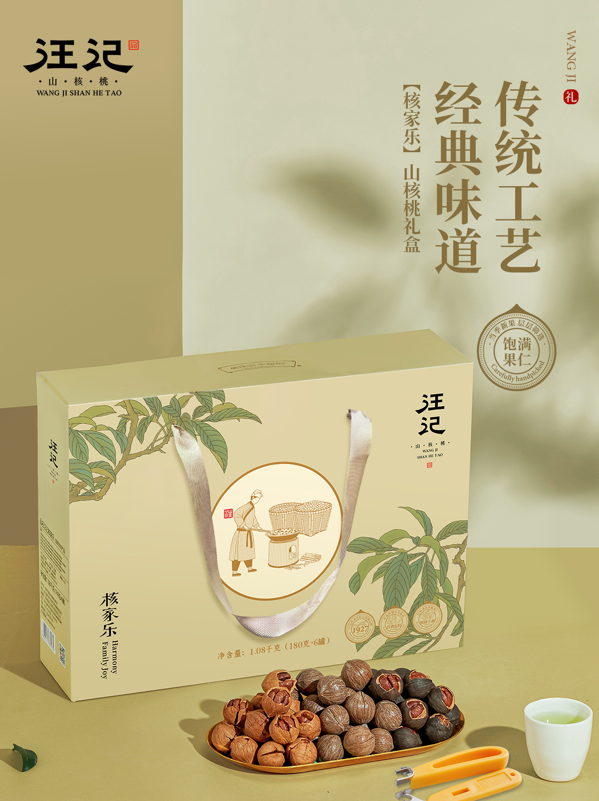 【手剥/原籽组合礼盒】汪记山核桃核家乐礼盒手剥原籽山核桃临安水煮山核桃送工具净重1080g