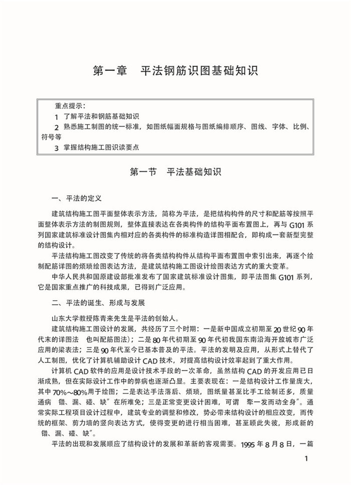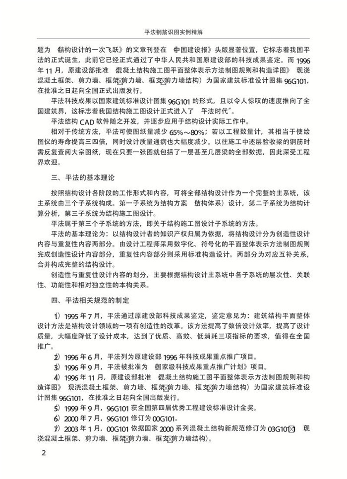 “平法”,即建筑结构施工图平面整体设计方法,为山东大学陈青来教授首次提出。自1996年11月第一本平法标准图集96G101发布实施以来,平法相关标准图集得到了广泛发展与应用。图集内容丰富,表述翔实,涵盖了现浇混凝土结构的柱、剪力墙、梁、板、楼梯、独立基础、条形基础、桩基承台、筏形基础、箱形基础和地下室结构的平法制图规则和标准构造详图。毋庸置疑,平法技术深入、广泛地应用促进了建筑科技的进一步发展。