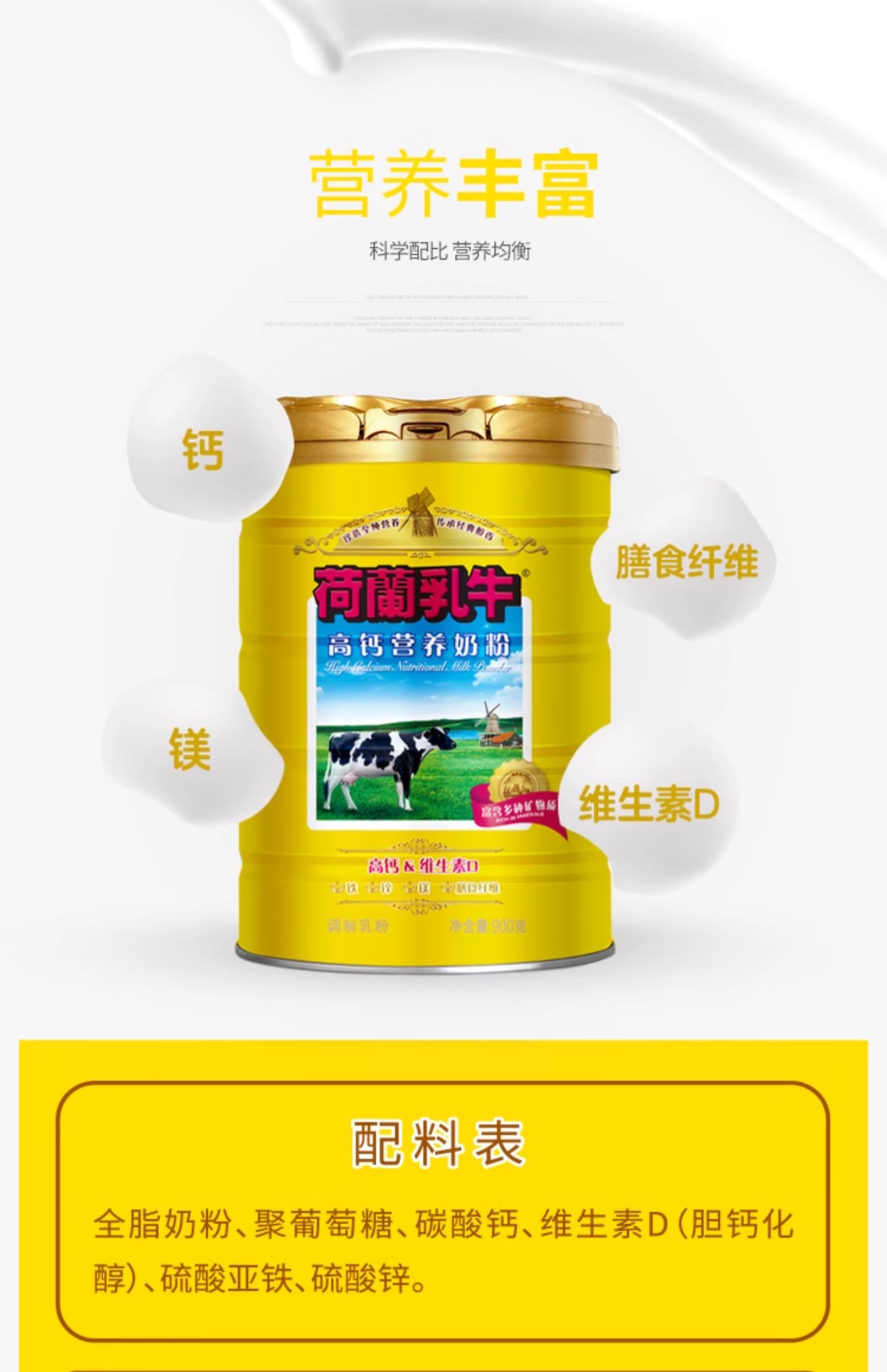 荷兰乳牛 高钙成人奶粉900g罐装
