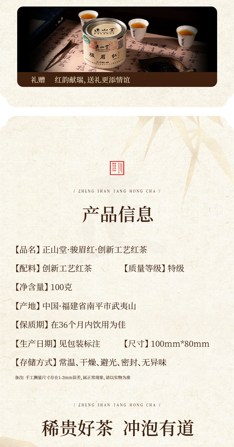 正山堂 骏眉红 正山小种红茶特级正宗武夷红茶叶蜜香罐装30g/100g/礼盒100g