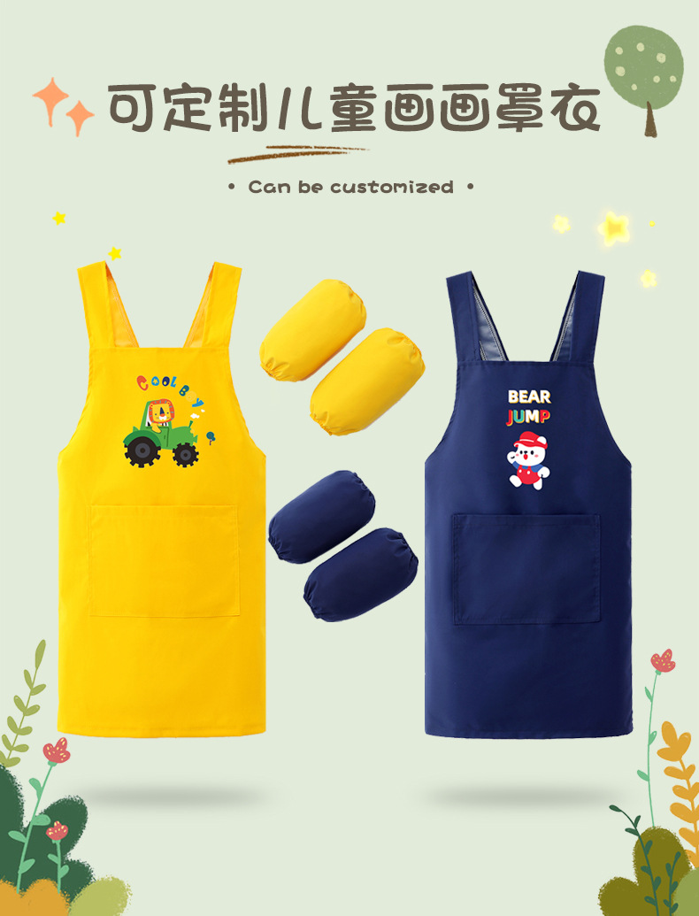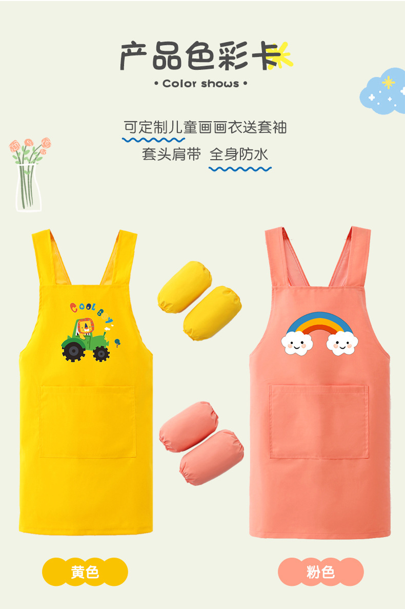 【送袖套!全身防水免洗】男女孩罩衣画画衣防水长袖厨房反穿衣中大童幼儿园绘画宝宝围衣