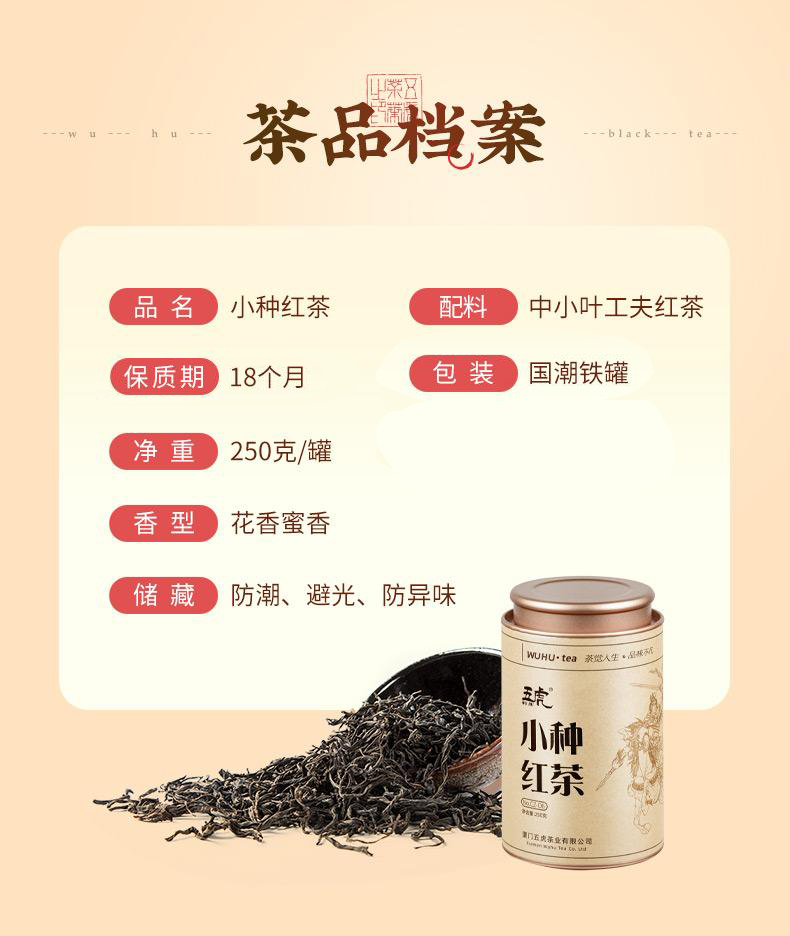【年货茶礼】茶叶 正山小种 红茶茶叶 年货礼盒 罐装 茶饮 五虎 250克