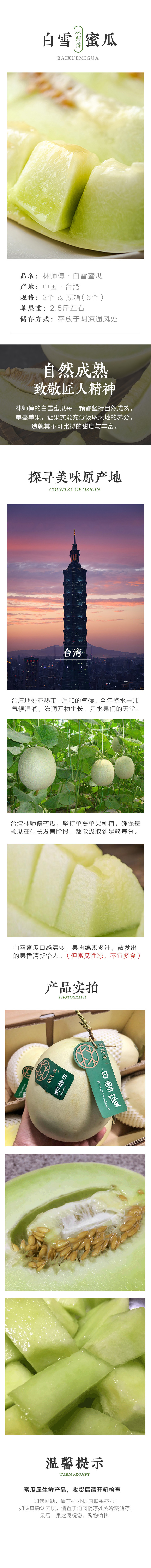 【2026新货!林师傅白雪蜜瓜】台湾林师傅出品,果肉呈绿色,口感绵软,比起口口蜜甜到齁的暴击,白雪蜜甜的更温和清爽。单果约2.5斤,江浙沪皖顺丰包邮~