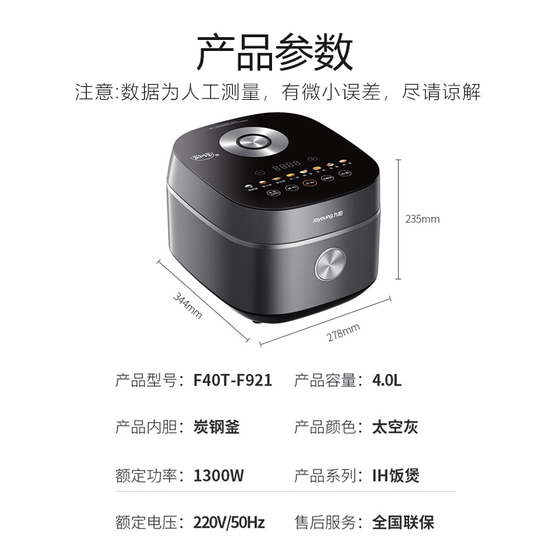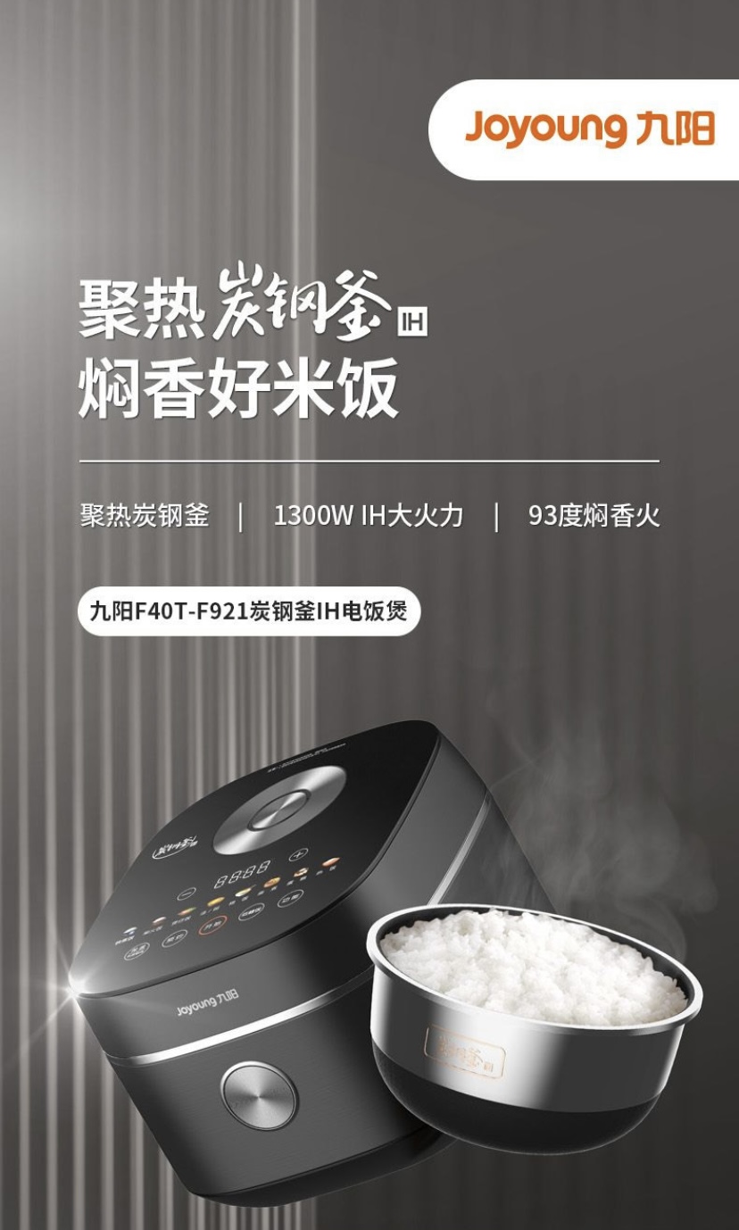 【碳钢釜】Joyoung/九阳F40T-F921八层厚釜IH电饭煲低糖电饭锅4.0升
