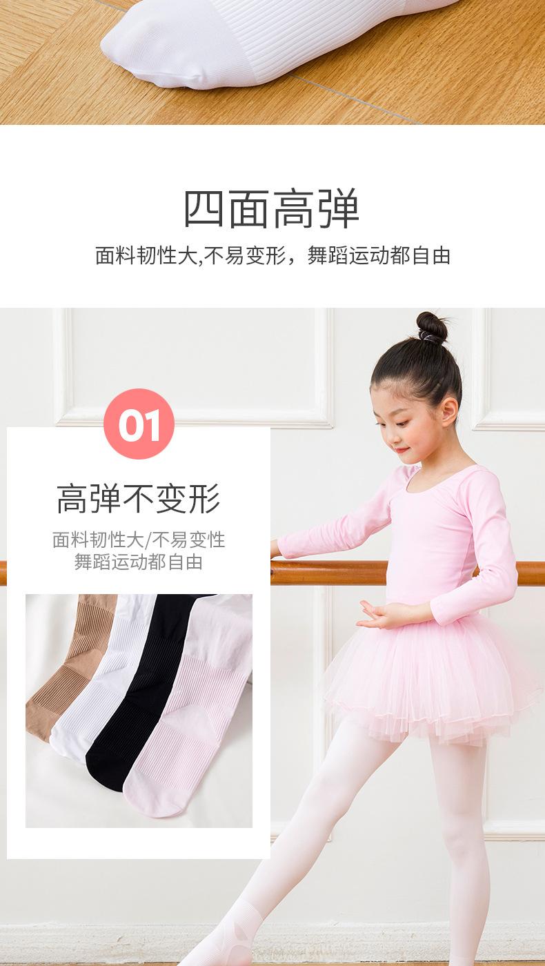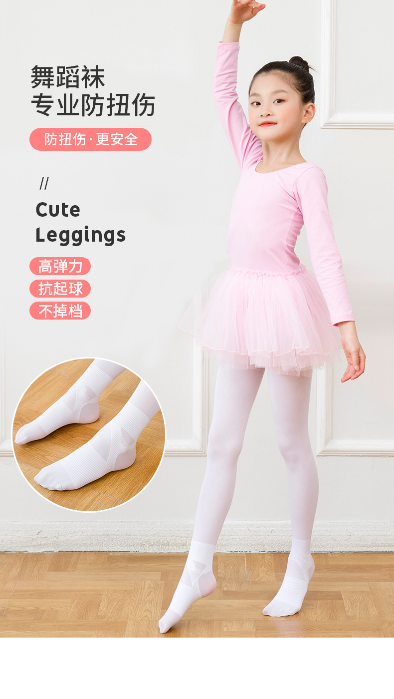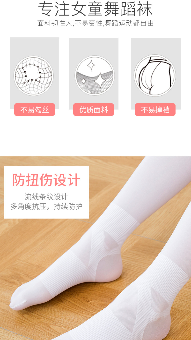 【专业防扭舞蹈袜】考级用纯白色弹力净版儿童连裤袜 抗起球女童打底袜子