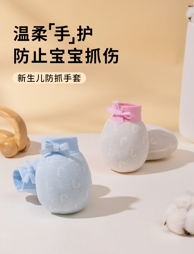 【新生儿防抓手套 网眼透气不闷肤】婴儿手套防抓脸神器夏天新生儿0一3个月可啃咬宝宝护手套包