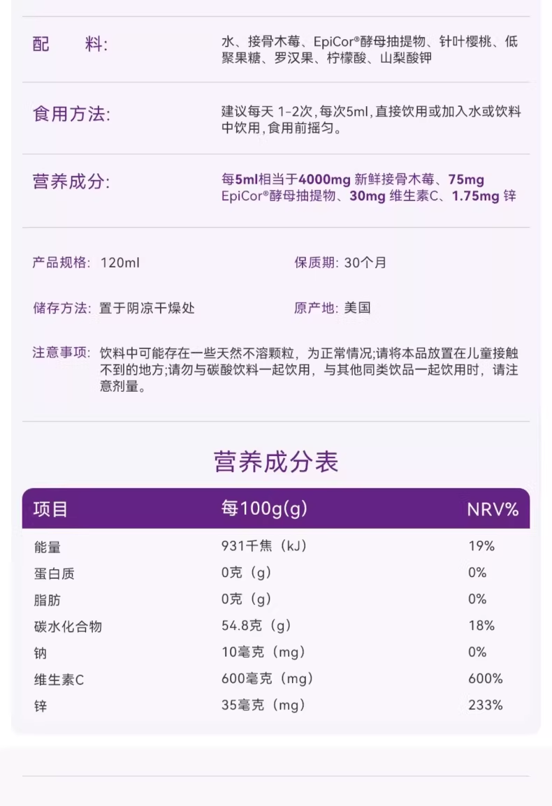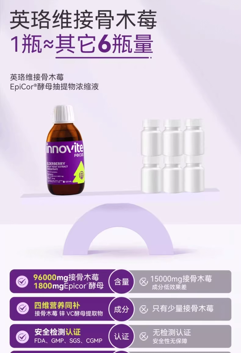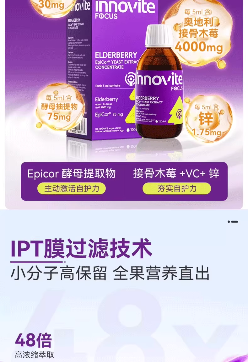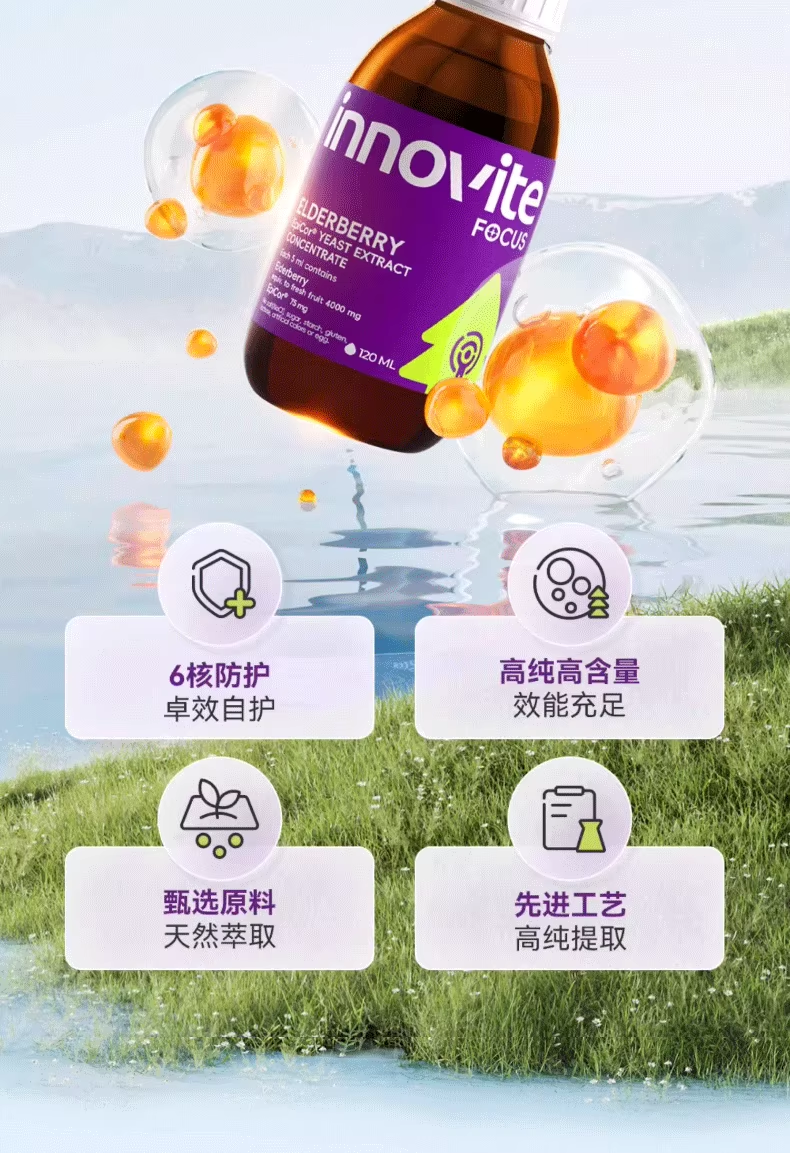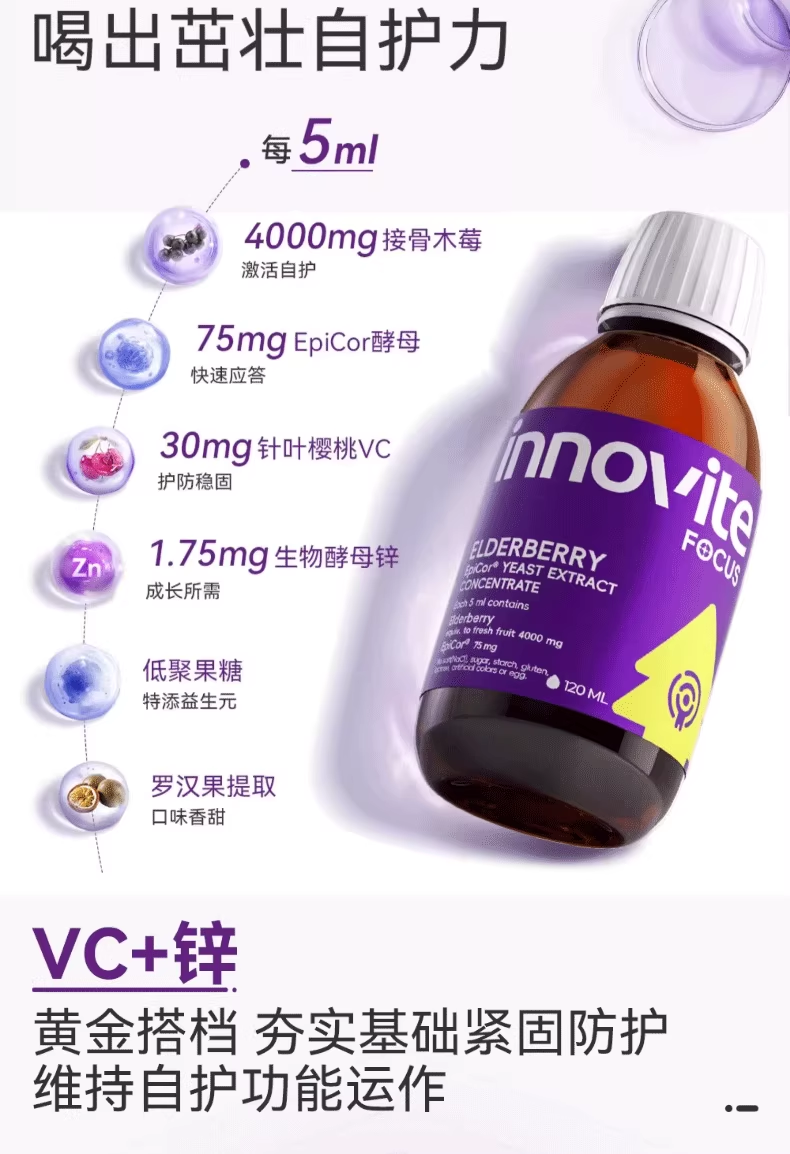 【源码新包装】innovite英珞维接骨木莓120ml儿童epicor酵母锌复合维生素C儿童营养品