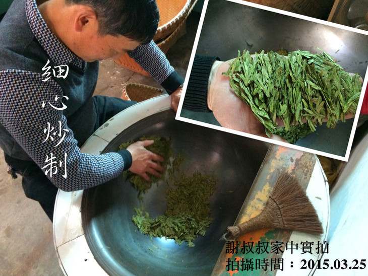 上图中的谢叔叔正细心的炒制龙井茶,你们的好茶即将诞生!