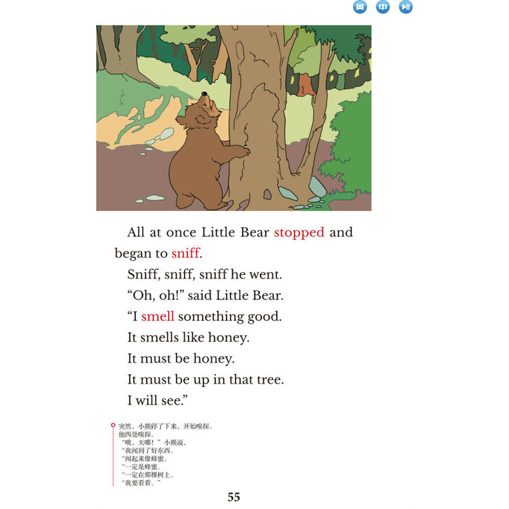 另外,为使读者充分利用《美国小学英语》,除了美音朗读,我们还开发了文本点读功能和在线微课程(《美国幼儿英语》另有开发)。详情请见“微课使用说明”与“点读说明”。