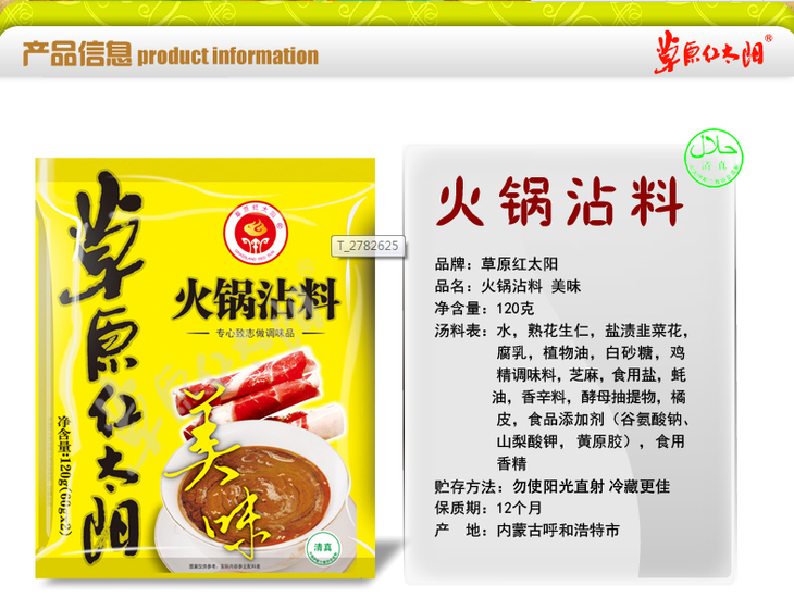 草原红太阳 火锅蘸料120g/袋(原味)