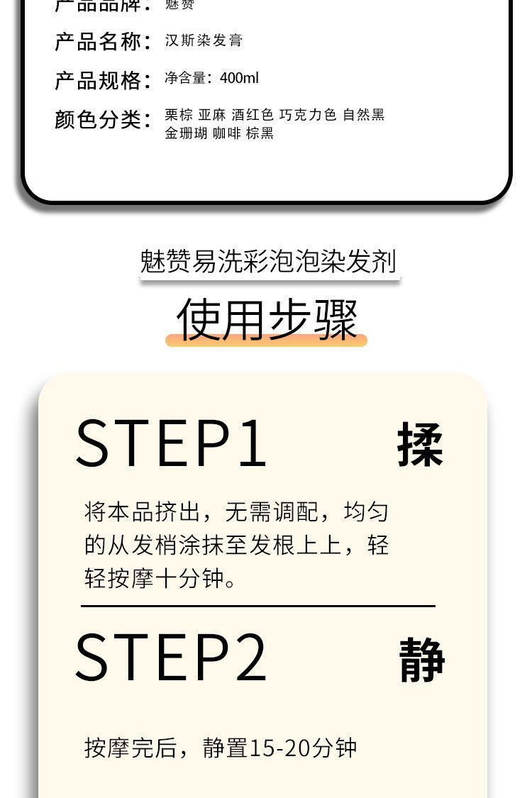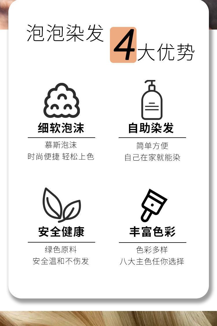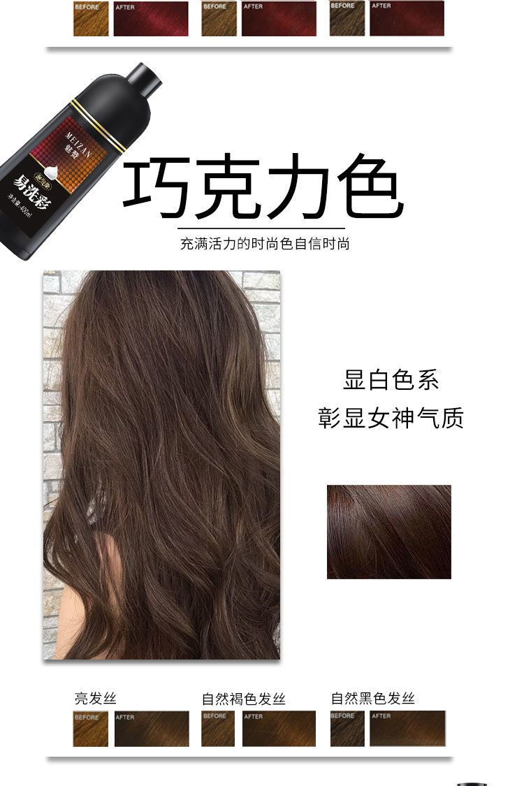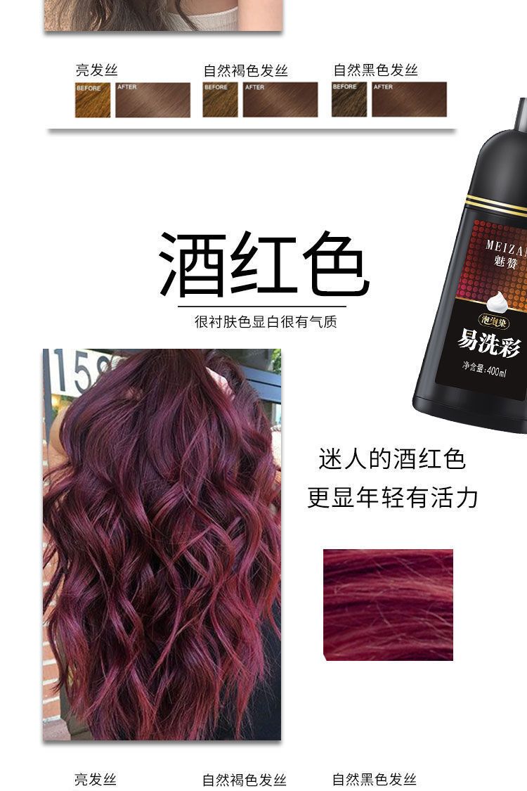 洗头就能去染发的产品真的存在吗?魅赞易洗彩植物染发剂真的能做到!不用像传统染发剂一样调配,只要一按,将泡沫均匀涂抹在头发上就能染发,染发真的就像洗头一样简单!并且它的着色力度超级持久,染过之后的发色也超级自然,特别显年轻!它是多重养护温和型染发剂,对头发伤害超级小,哪怕是头皮敏感的也适用。使用超级方便,自己在家就能染!