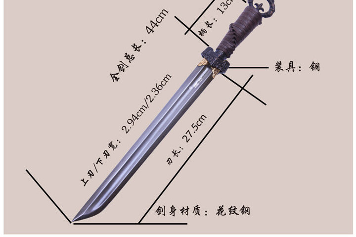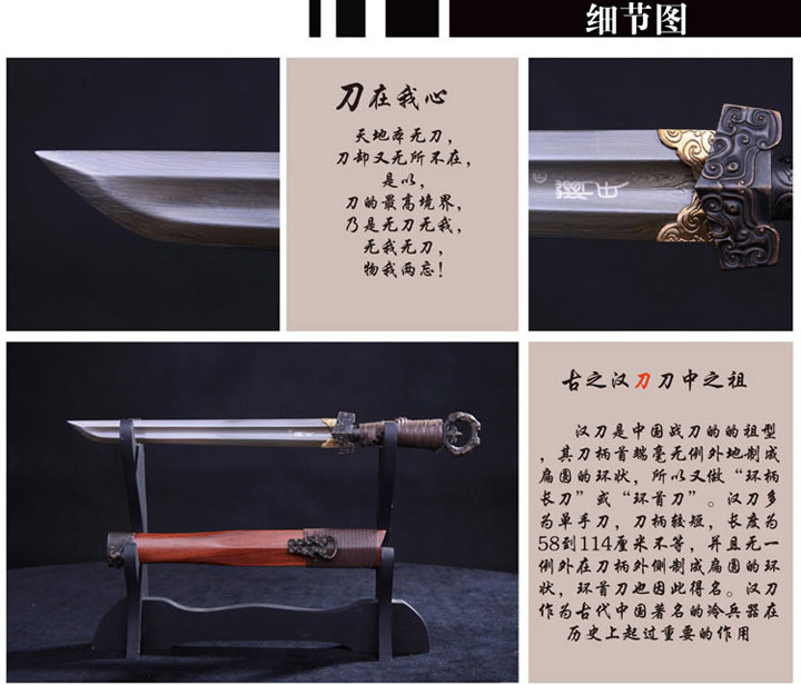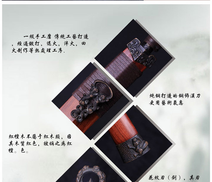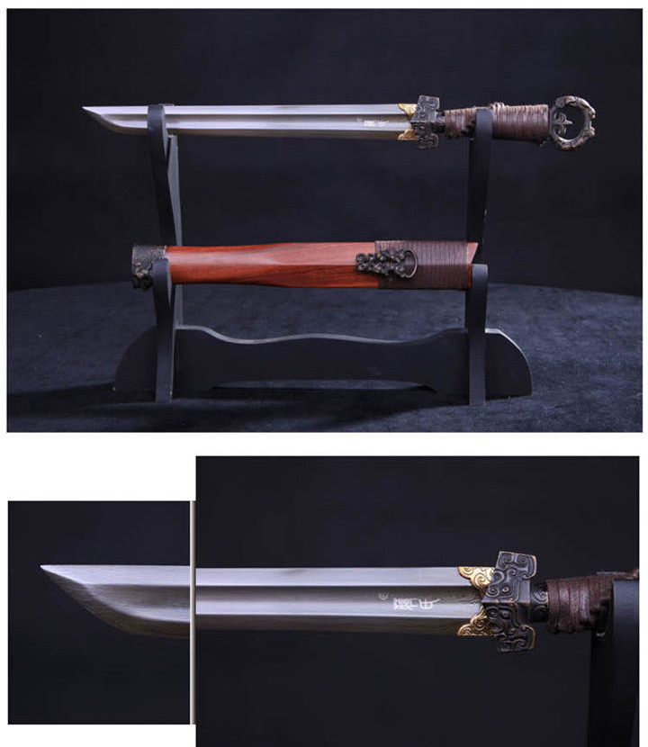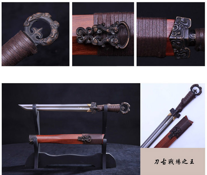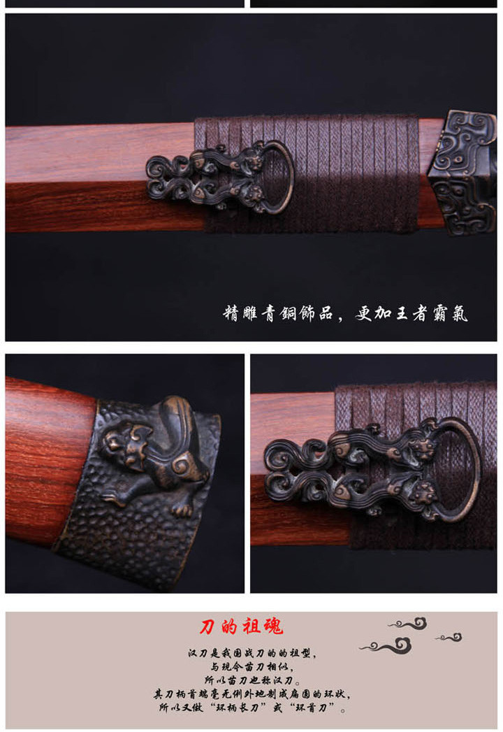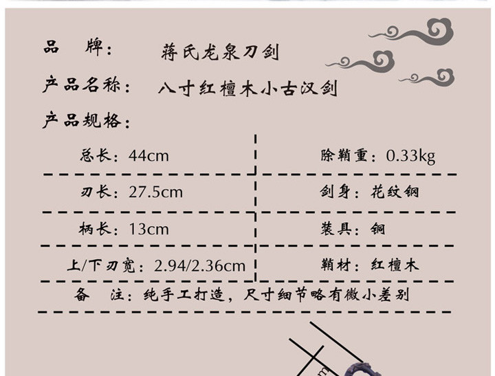 蒋氏 龙泉刀剑 经典8寸红檀木环首剑 汉剑未开刃