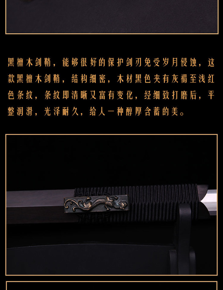 蒋氏 龙泉刀剑 黑檀木八面汉剑-剑中王者 汉剑未开刃