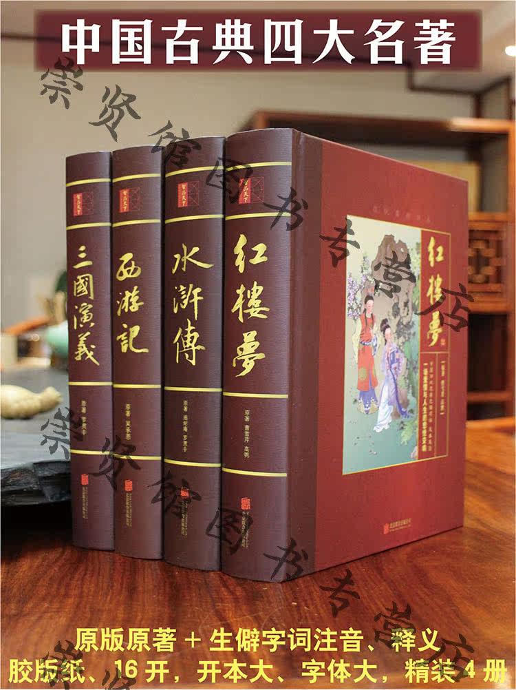 最新版 中国四大名著全套 原著版 带注释 大字版精装