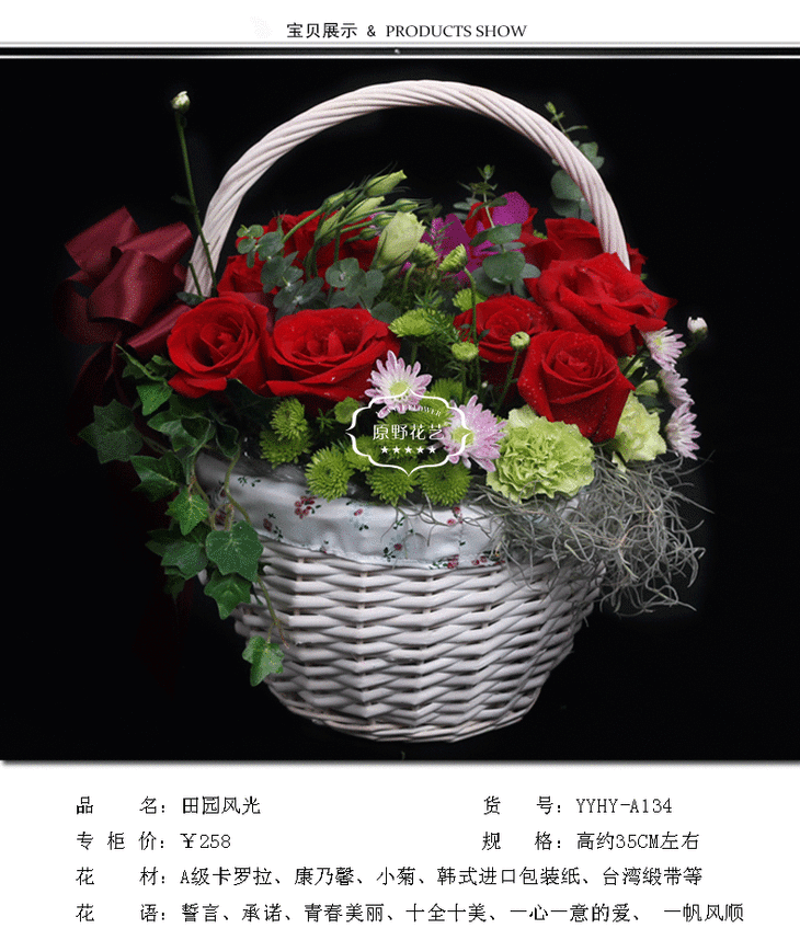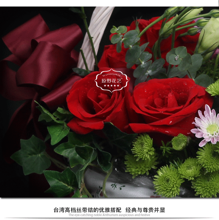 红玫瑰手提花篮