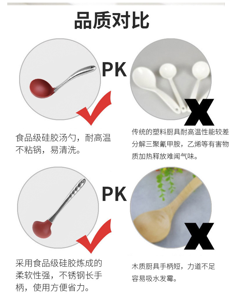 【一勺在手美味不逃走】韩国didinika硅胶汤勺不锈钢空心柄硅胶勺子隔热汤勺硅胶厨具