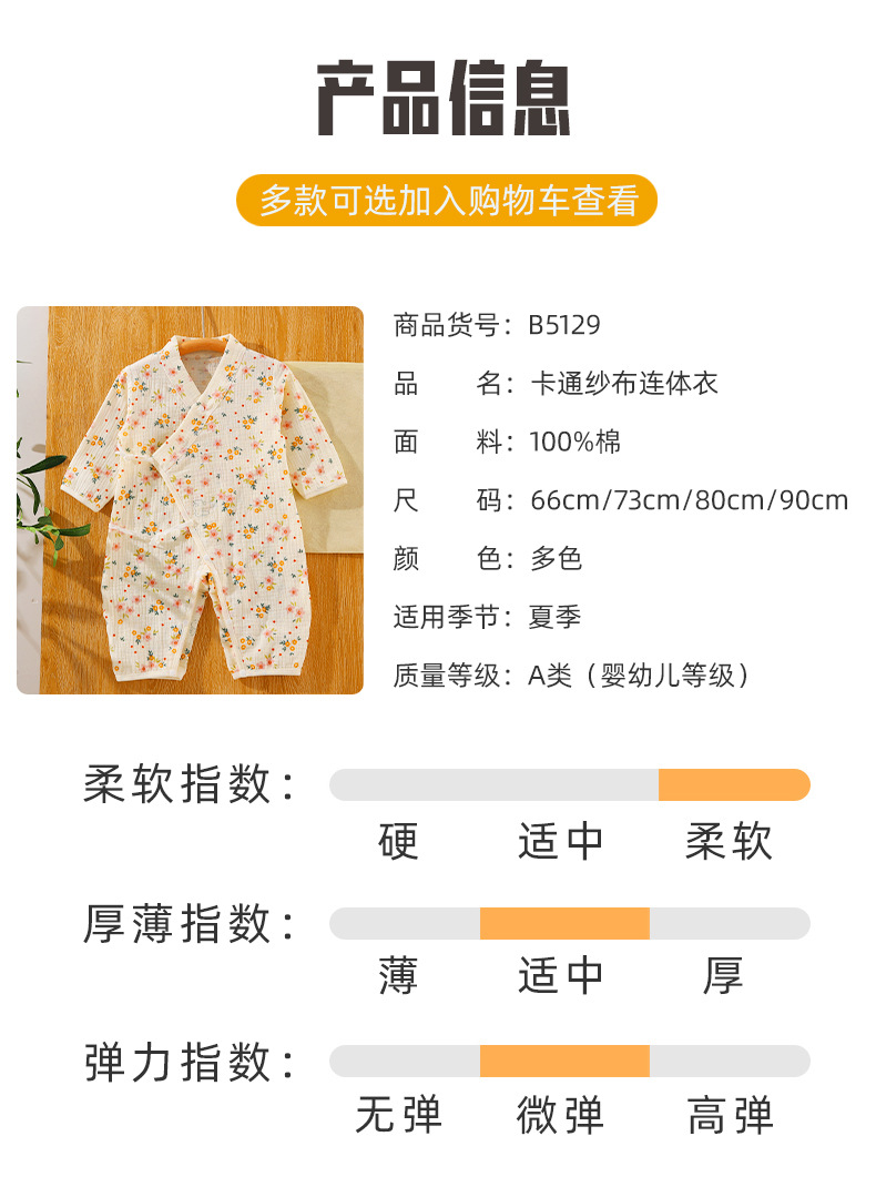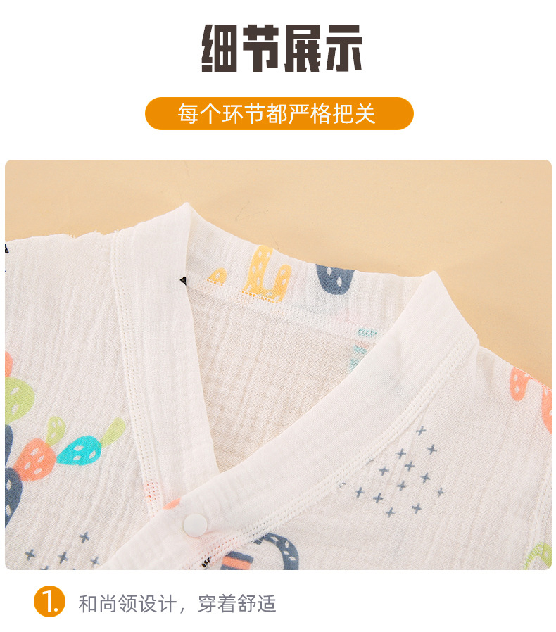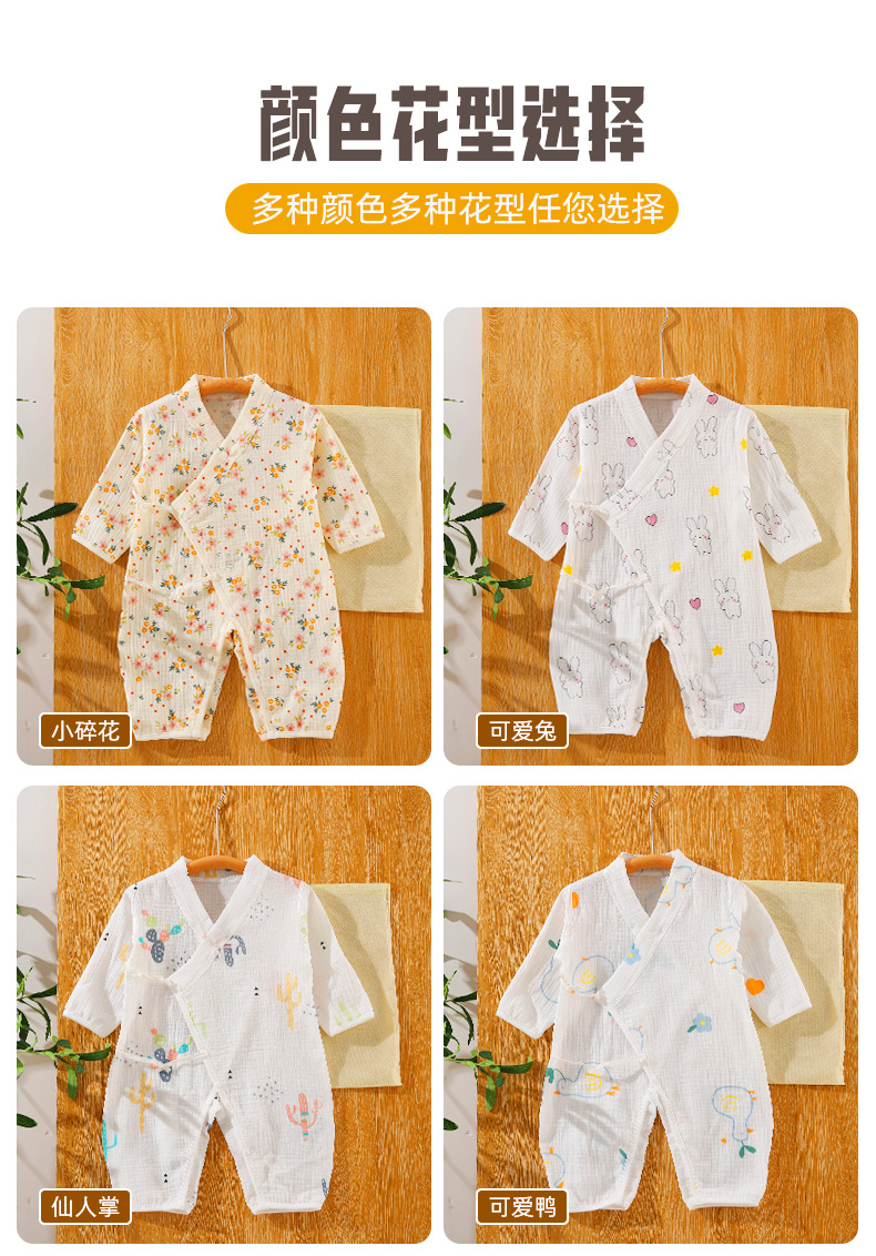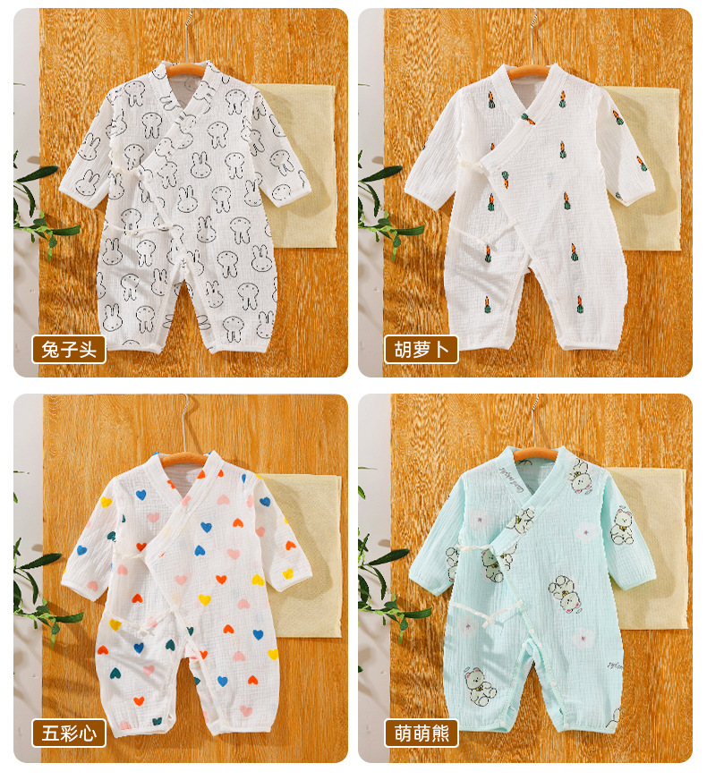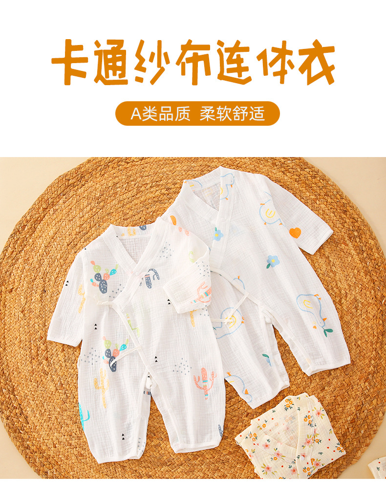 【卡通纱布纯棉连体衣】人之初新生儿纱布哈衣超薄夏季宝宝睡衣家居服和尚服幼儿超萌外出