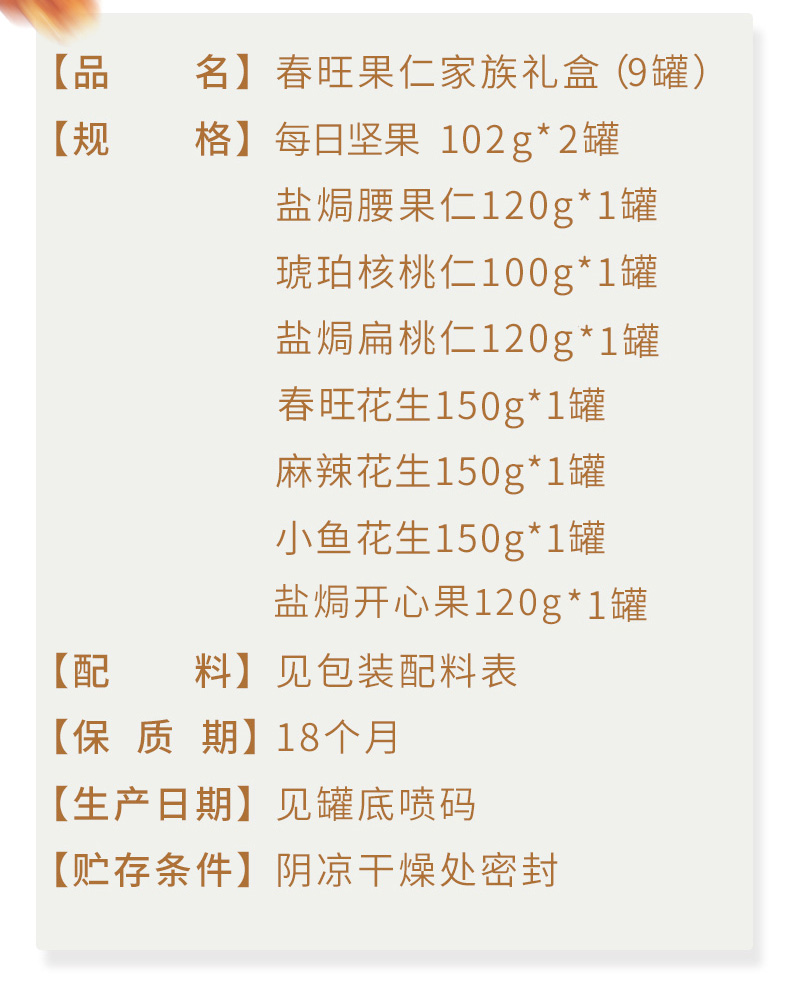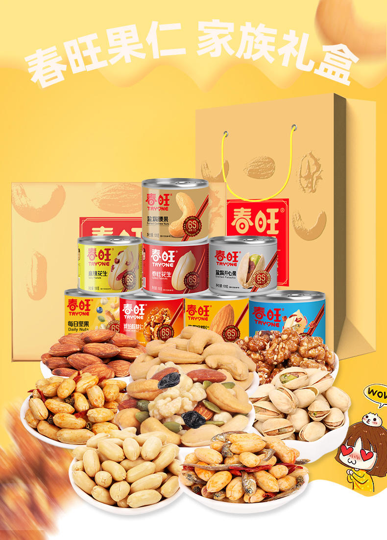 春旺坚果礼盒果仁家族花生 腰果扁桃仁核桃仁 年货礼盒团购节礼
