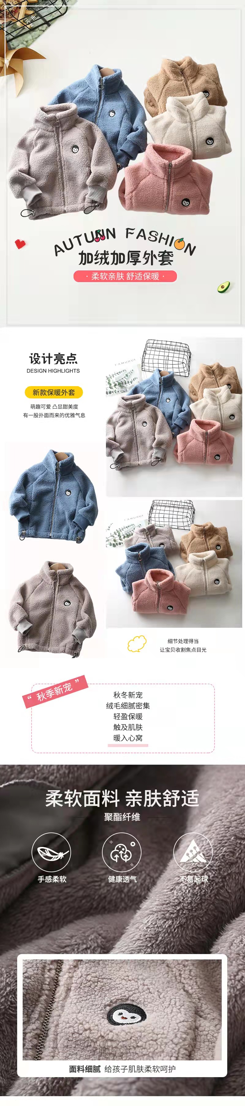 【绒毛细腻密集 暖入心窝】颗粒羊绒保暖外套秋季新品 ins加绒加厚抽绳立领长袖上衣男女童装