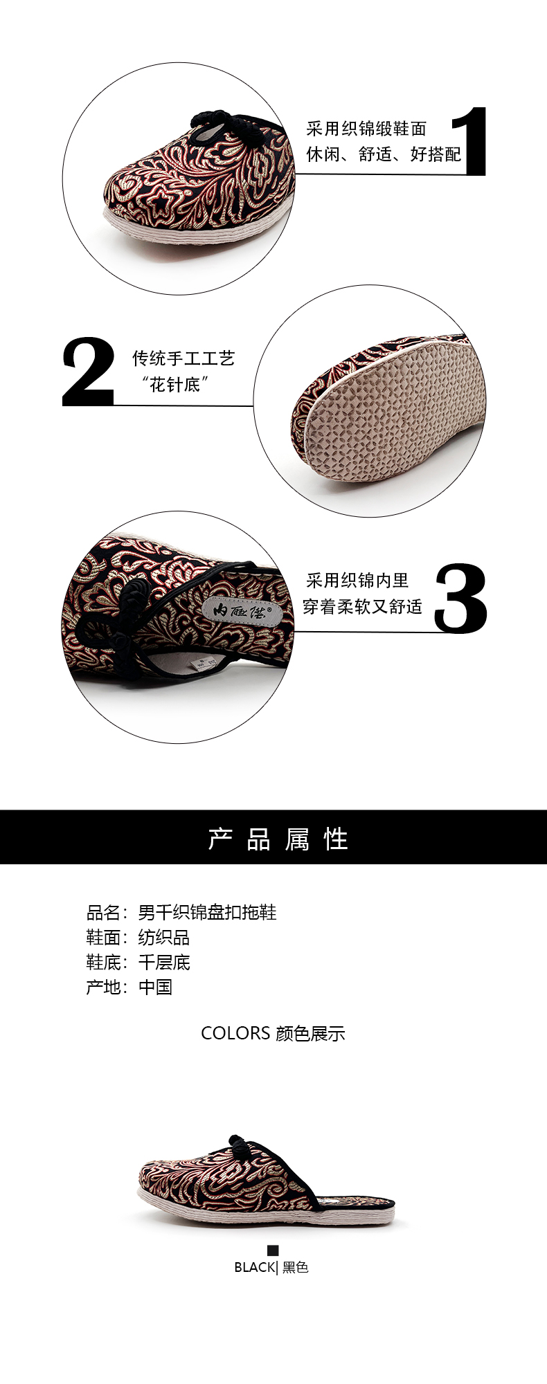 内联升男鞋室内情侣千层底织锦盘扣拖鞋2039C/2040C