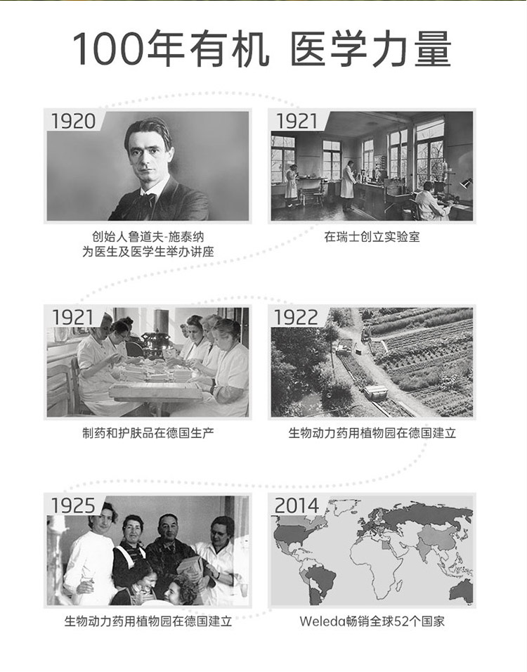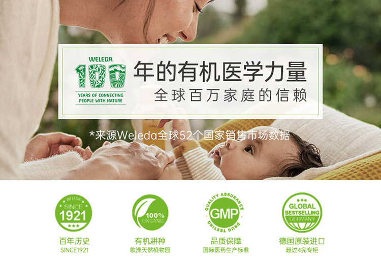 全球领先的有机护肤品牌WELEDA (维蕾德)。1921年由人智学创始人STEINER创建于瑞士,在德国,瑞士,法国拥有大型的有机种植园。帮助人类以最自然的方式保持健康。倡导 人与自然,和谐统一。