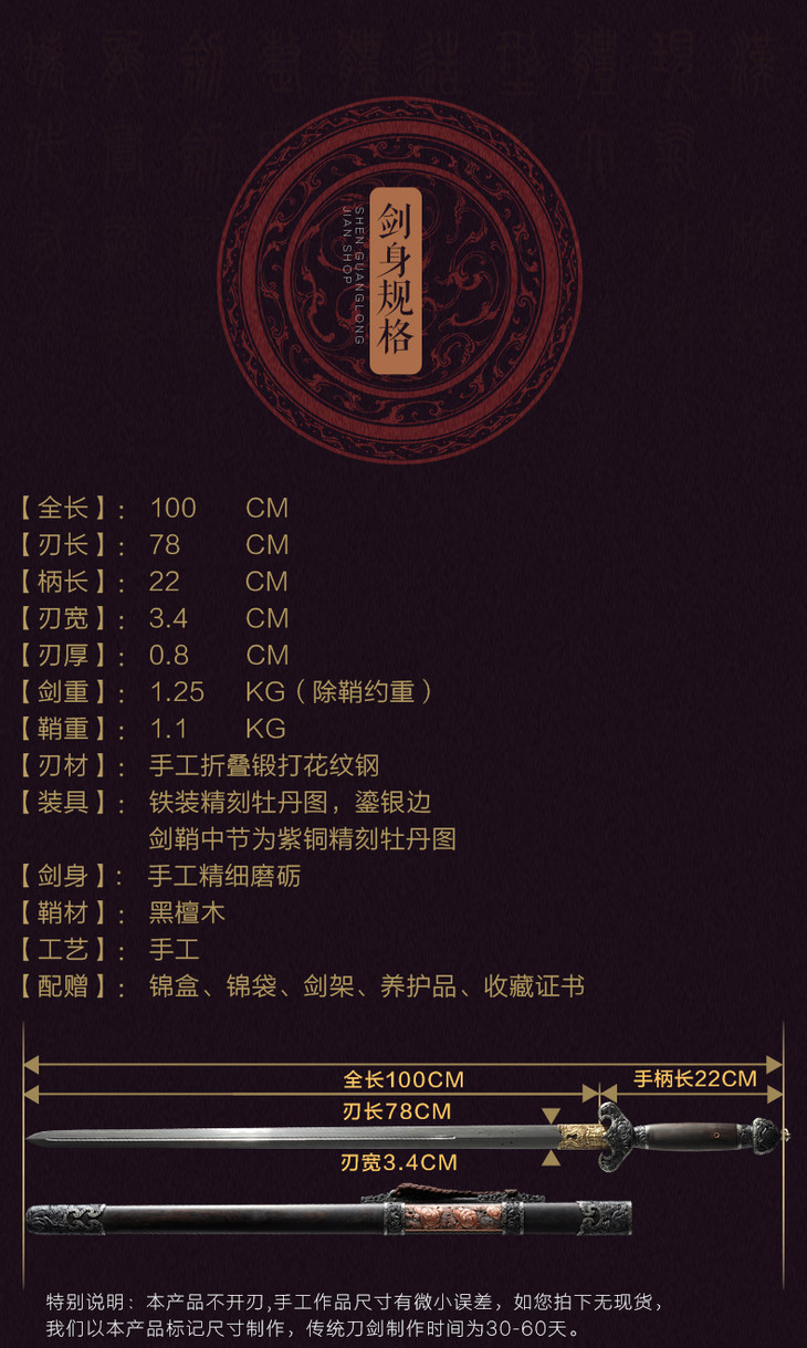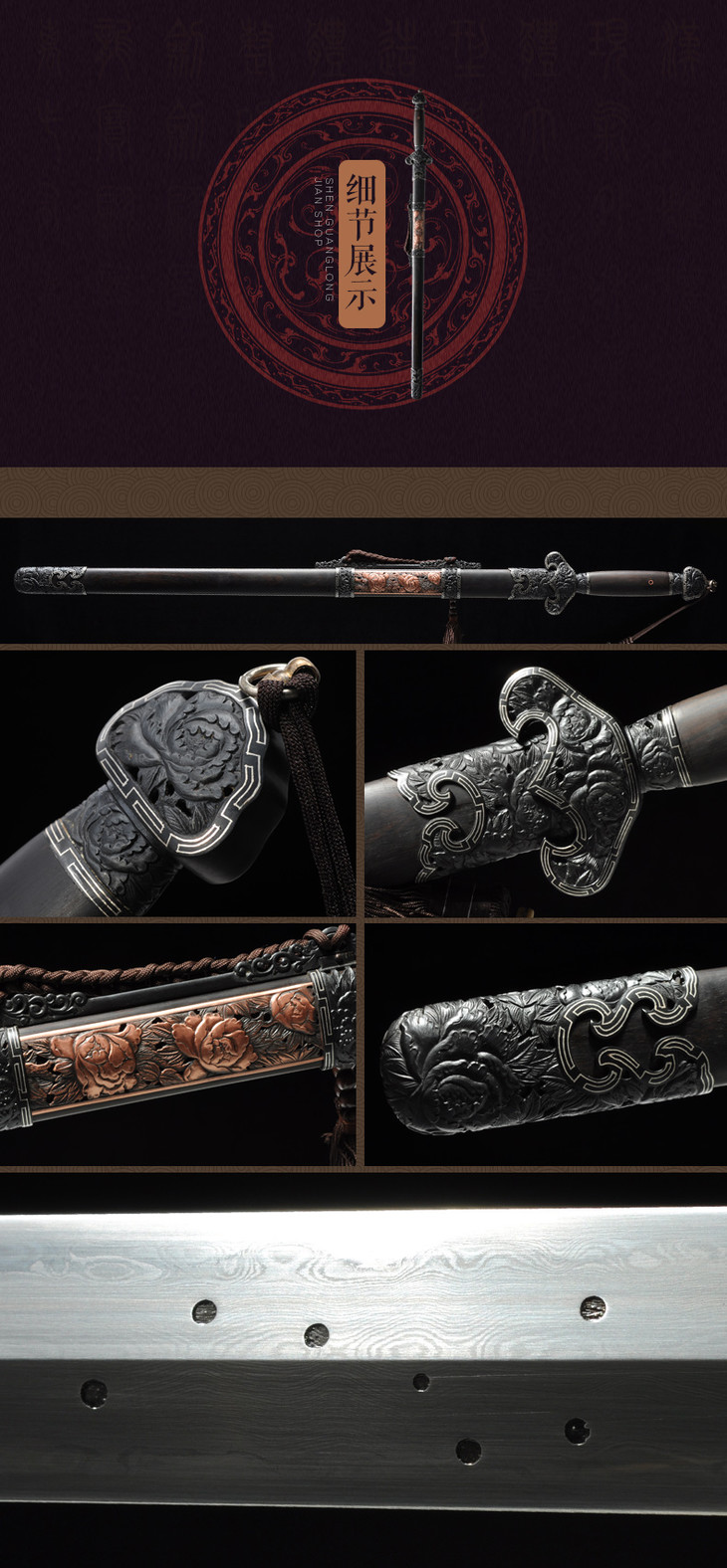 牡丹清龙泉 沈广隆剑铺龙泉沈广隆宝剑手工剑仿古剑传统收藏剑 sgl-3002 未开刃