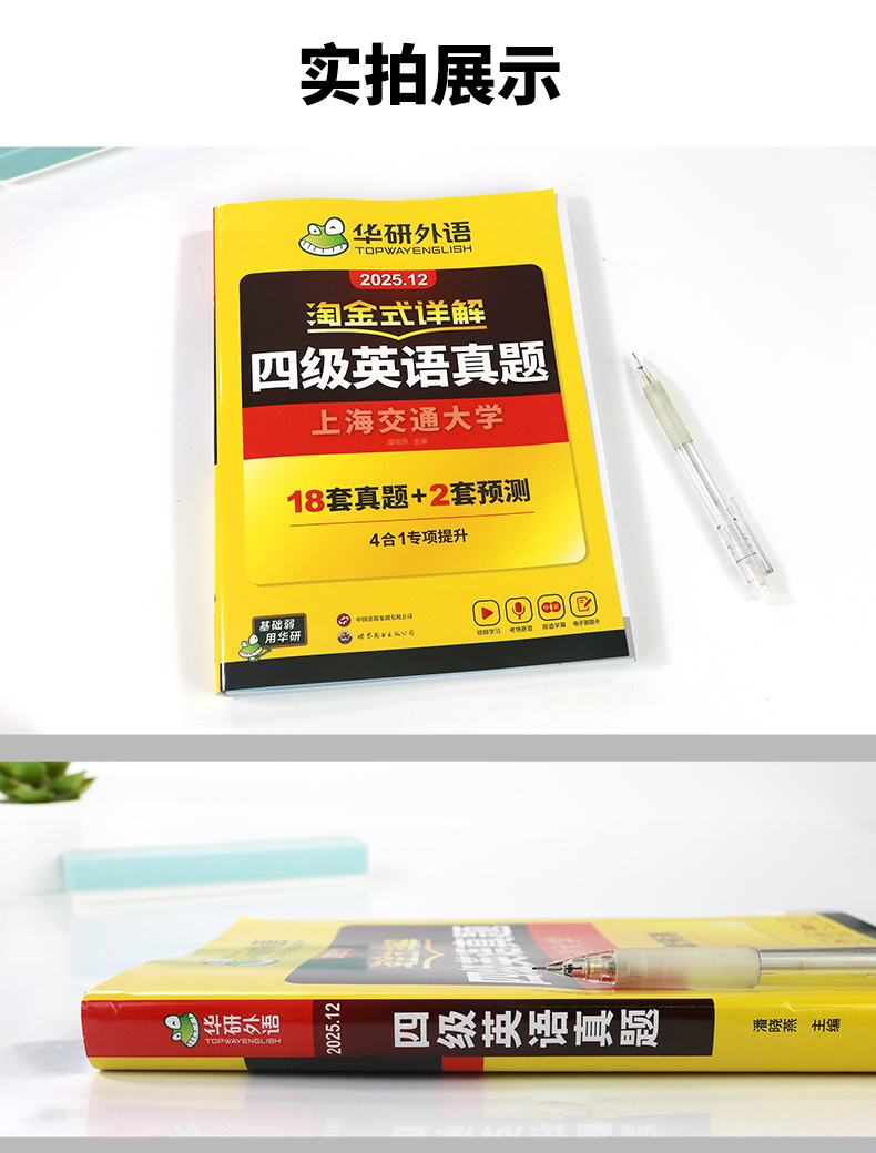 华研外语 淘金式详解四级英语真题 备考2025年12月 大学英语四六级考试历年真题试卷词汇单词阅读理解听力翻译与写作文专项训练资料书