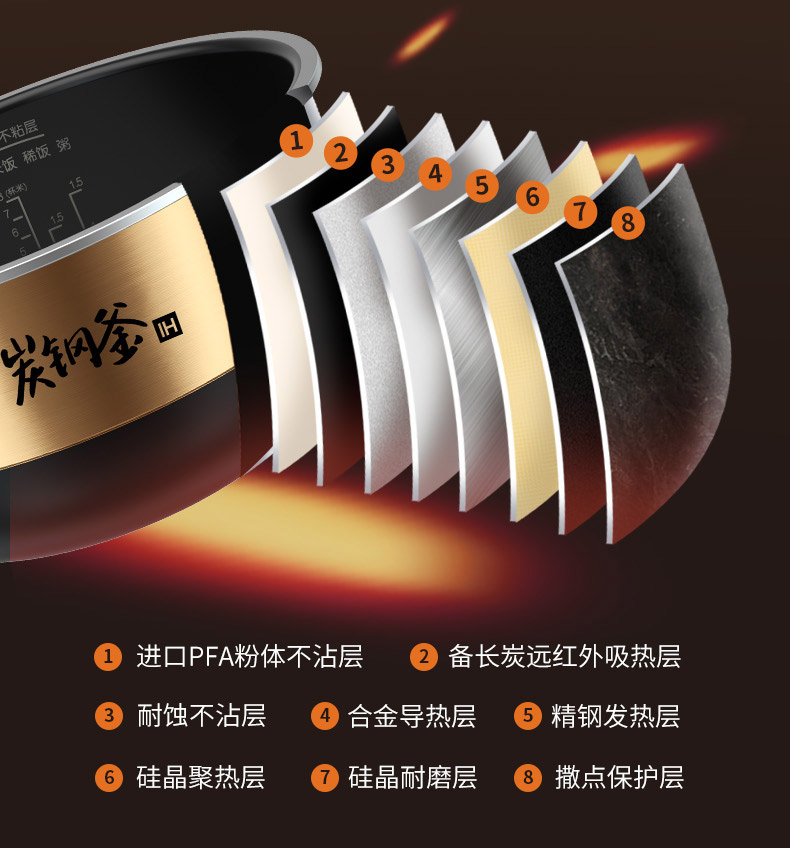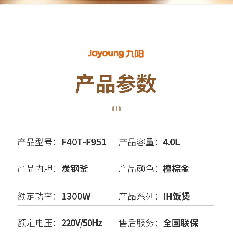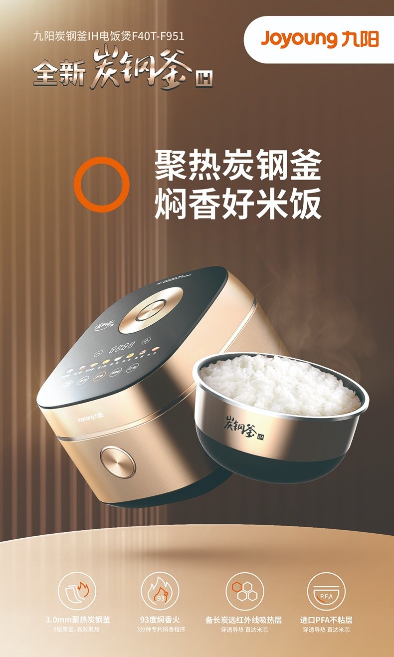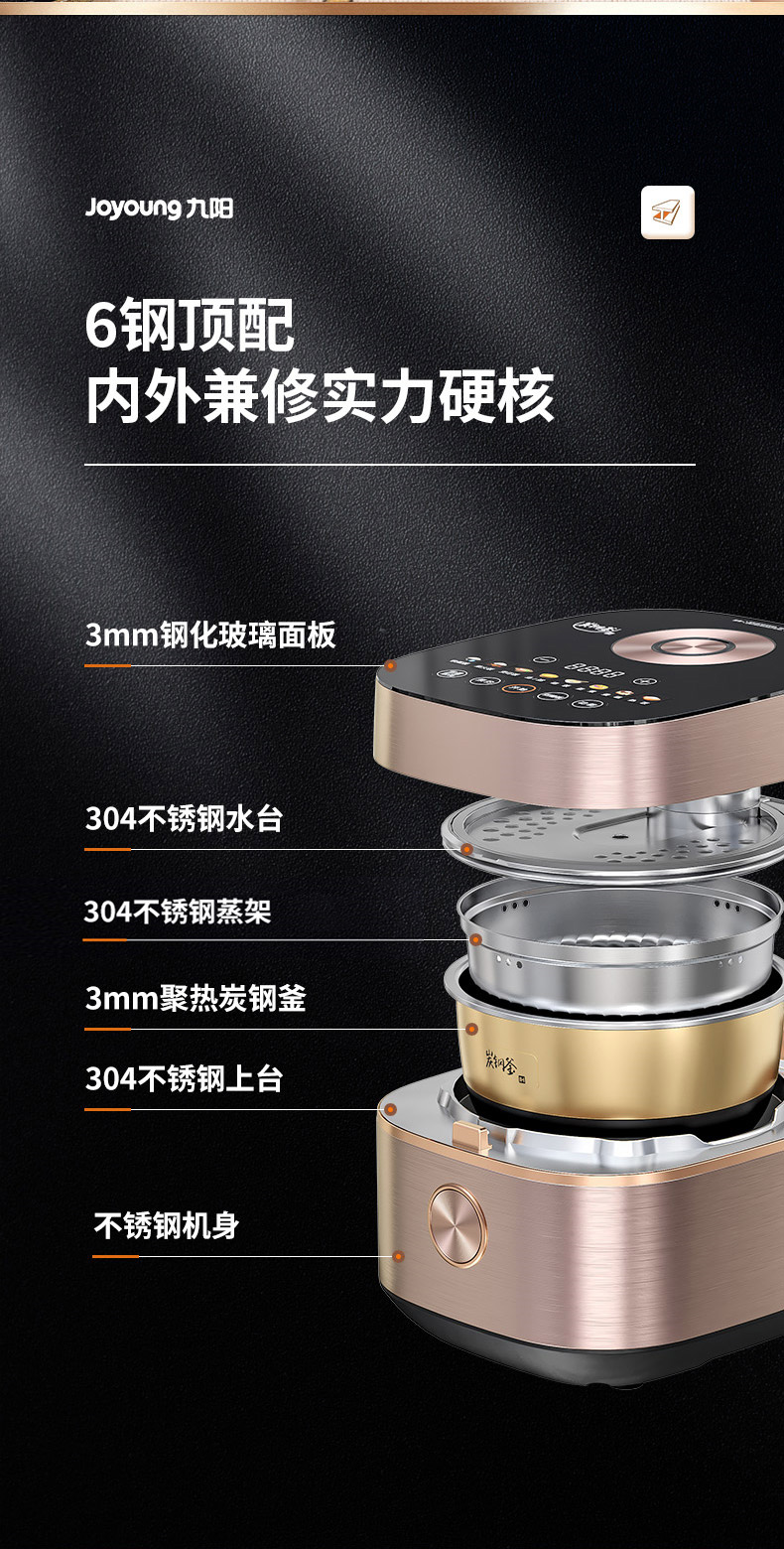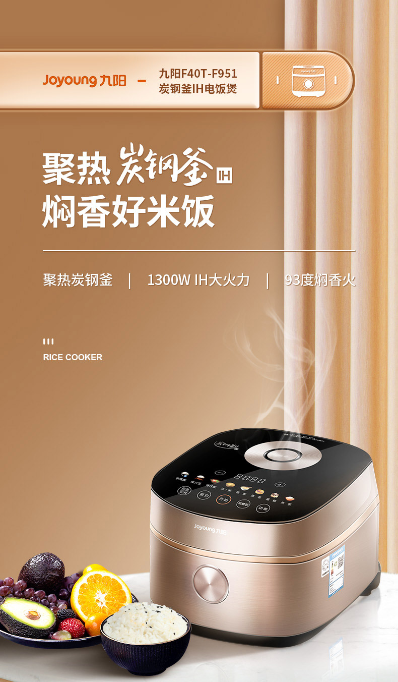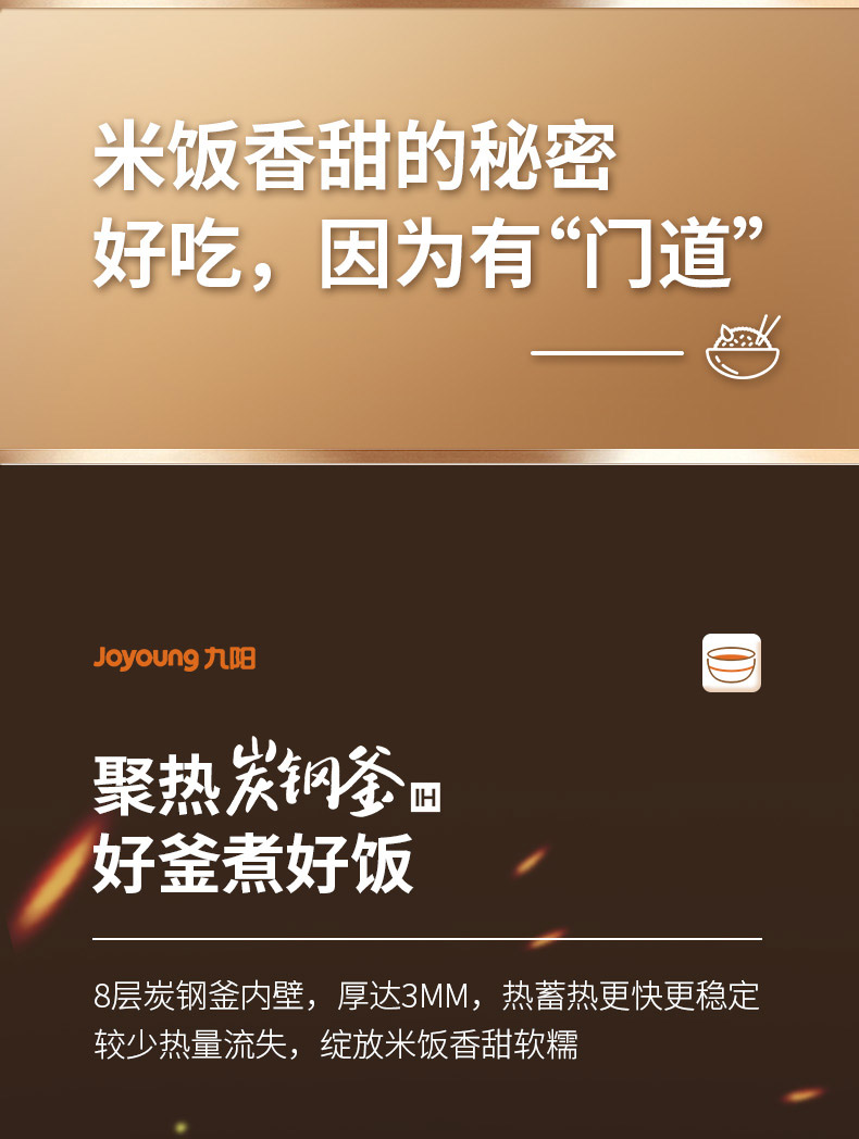 【碳钢釜】Joyoung/九阳F40T-F951八层厚釜IH电饭煲低糖电饭锅4.0升