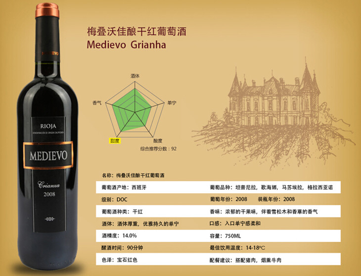 口感: 尚佳的平衡,酒体复杂,入口单宁感柔和。
