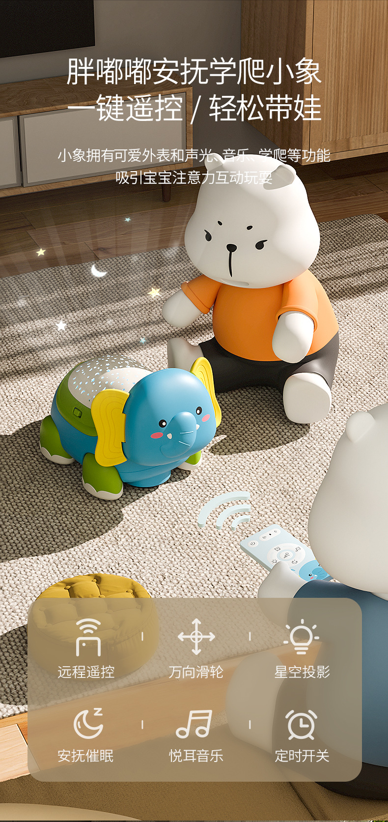 【梦幻星光投影 安抚学爬样样行!】大象电动学爬玩具宝宝多功能早教益智玩具星空投影玩具6-12个月