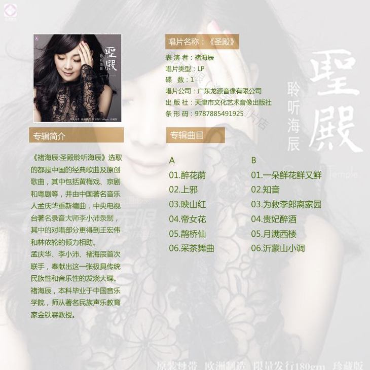龙源正品 李小沛最新录音 褚海辰《圣殿 聆听海辰》LP黑胶唱片
