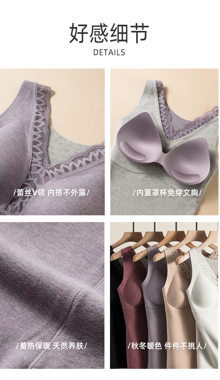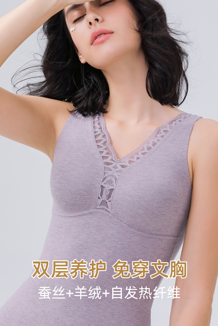 【超值2件装】法国利蜂/LOUIS ROYER “暖而轻盈”蚕丝羊绒背心 自带胸垫 轻暖养肤 商品图5