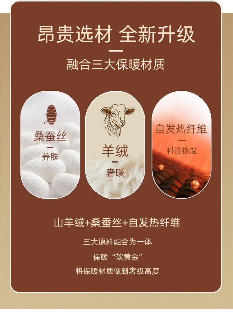 里层:粘纤46.6% 腈纶39.2% 氨纶9.5% 桑蚕丝2.8% 山羊绒1.9%