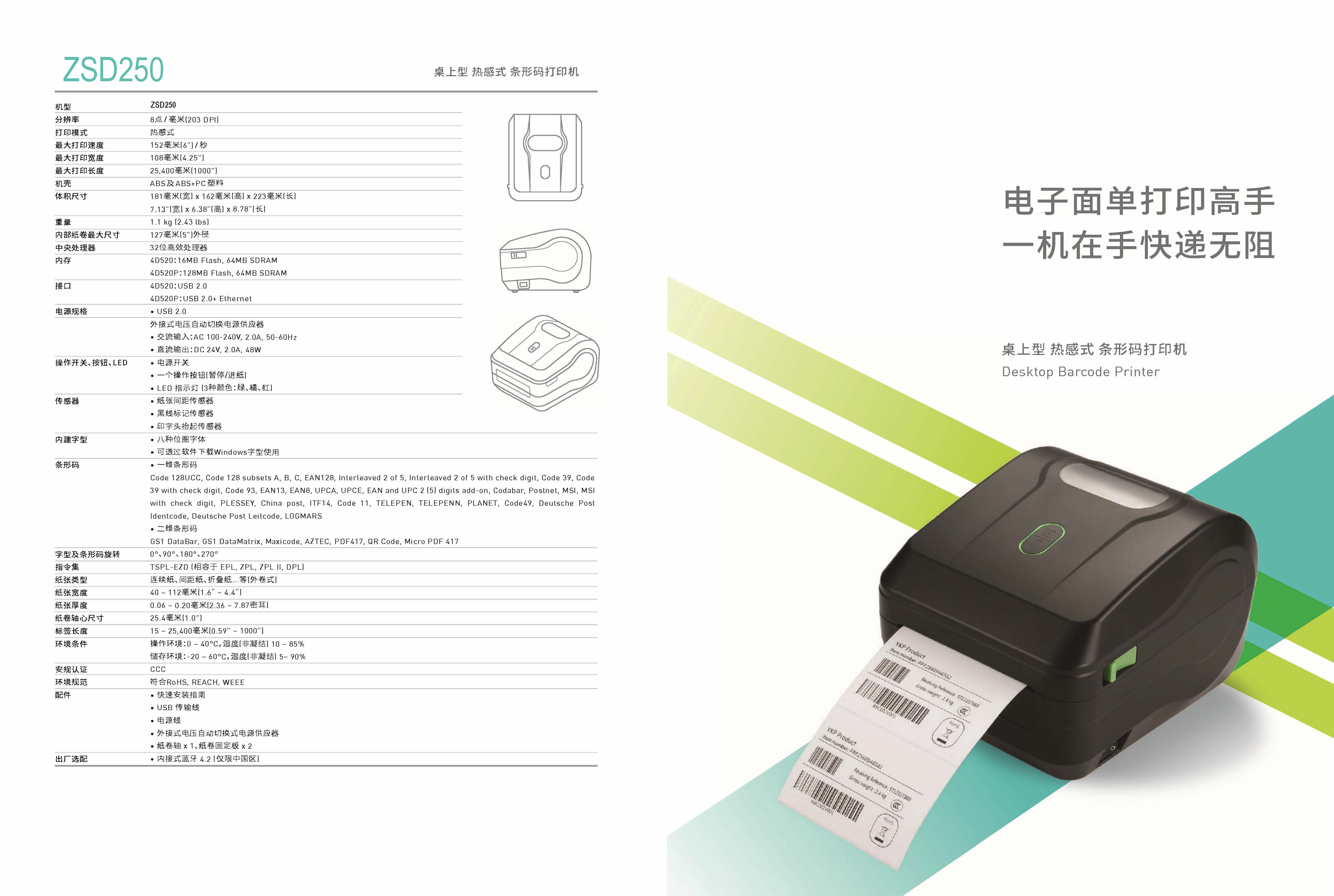 观麦自制ZSD250热敏标签打印机 商品图0