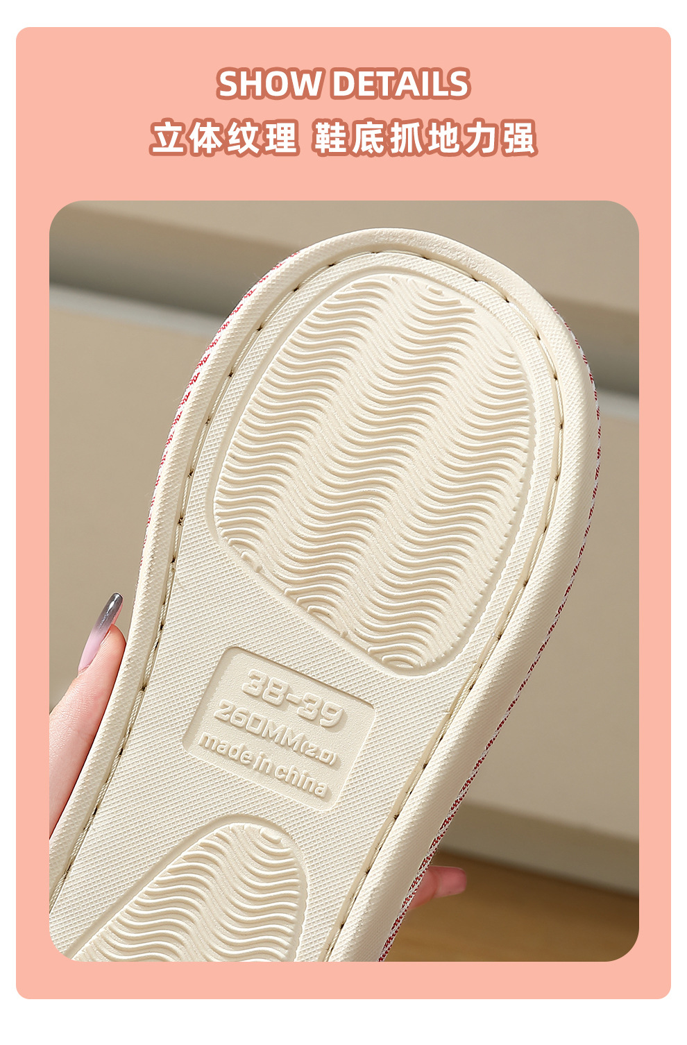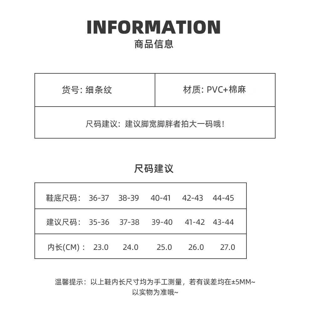 【品名】宅小年 细条纹棉麻家居拖鞋 柔软舒适 透气保暖 5色可选 【规格】红色、卡其色、藏蓝色、咖啡色、浅蓝色 【尺码】36-45(建议拍大一码) 【产地】国内 【发货包装】独立包装 【发货地】义乌 【发货快递】极兔、邮政随机发 【不发货区域】新疆、西藏、港澳台 【发货时效】2-7天,周末节假日顺延 |